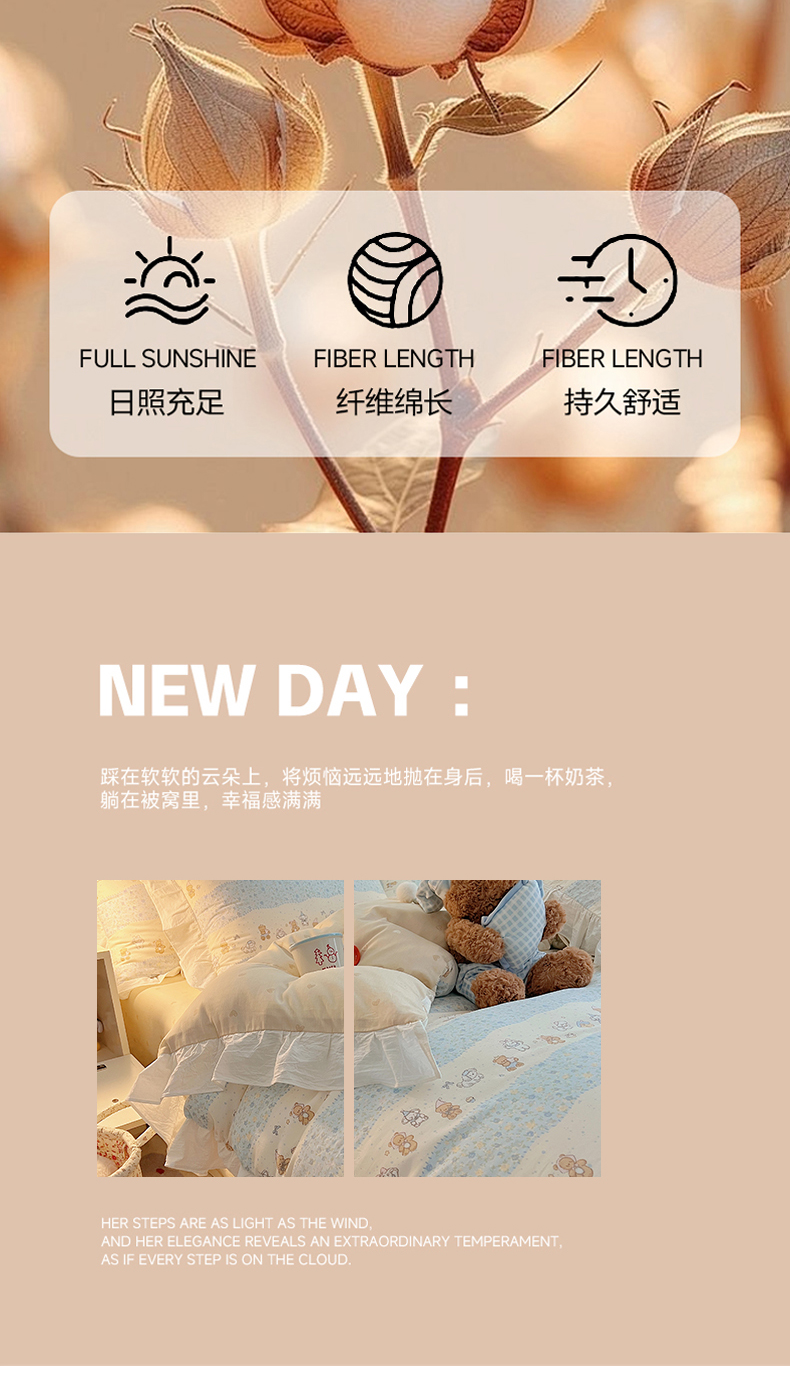 六巷胡同 2026春夏新款韩系花边款卡通全棉四件套(第二系列)风格一 花边熊友赏花集