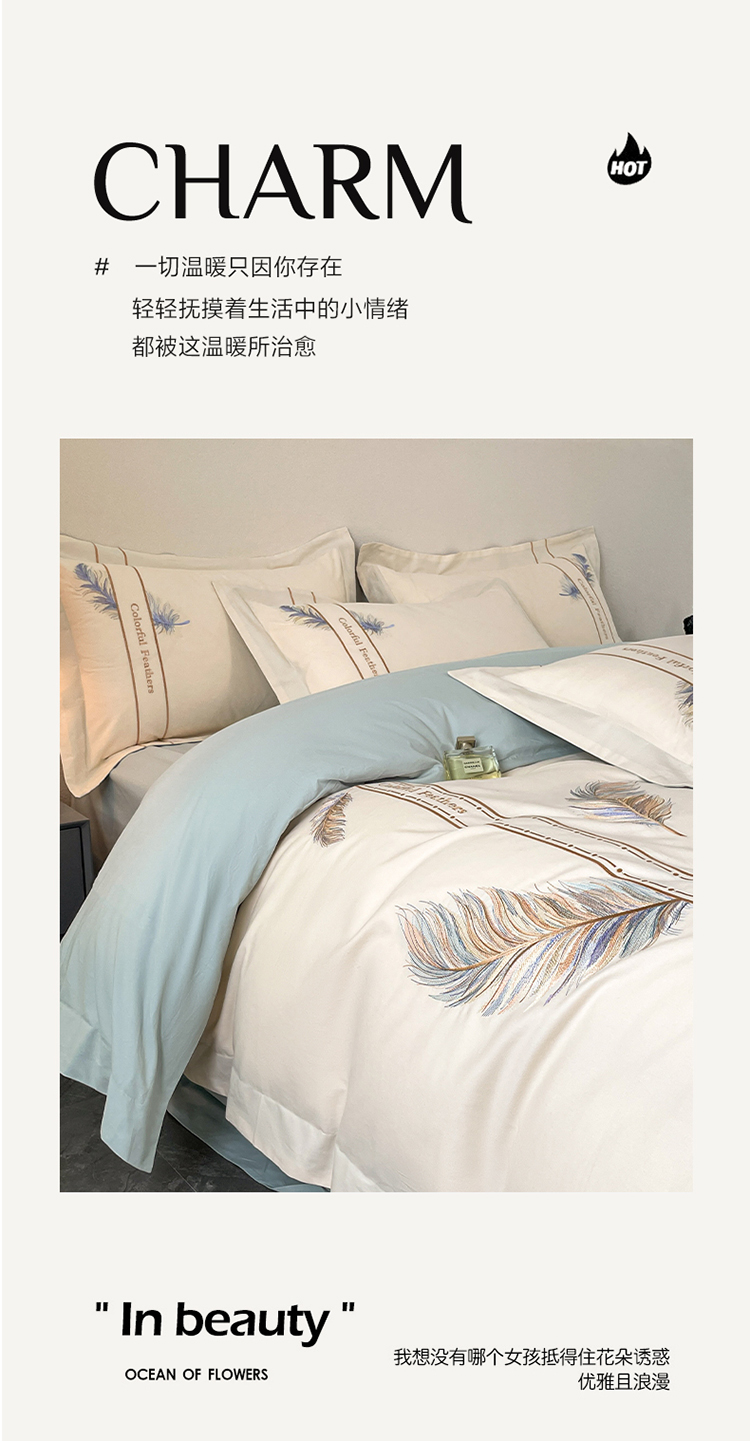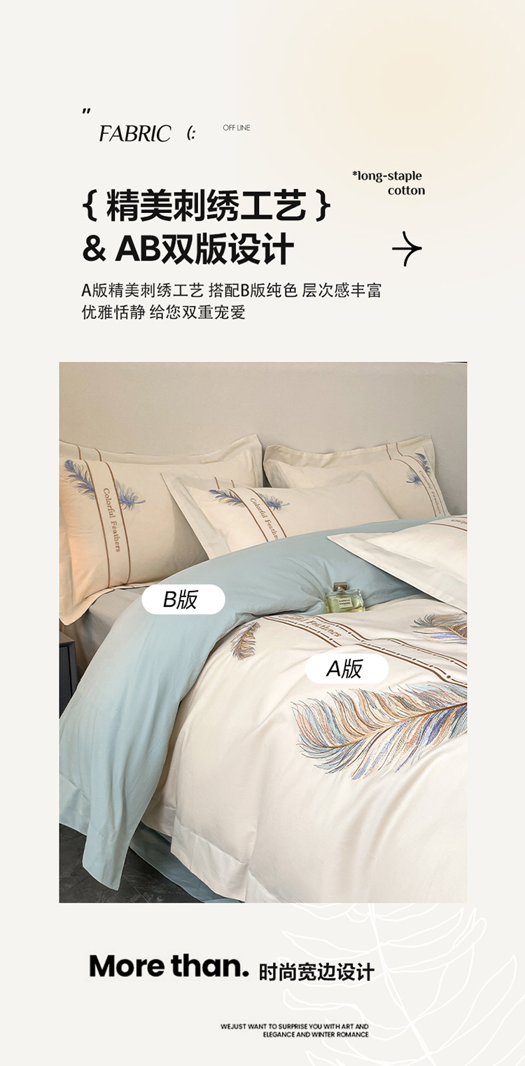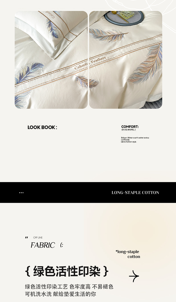 商品名称:欣宜家纺 2025新款纯棉全棉长绒棉磨毛不掉毛高端四件套羽翼系列带礼盒 白兰