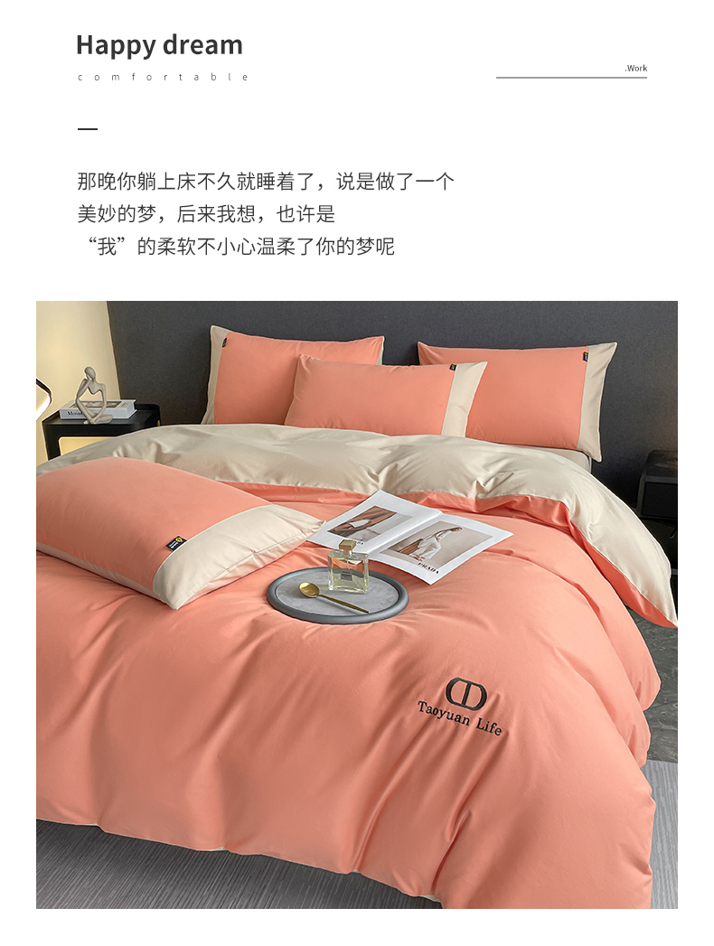 商品名称:欣宜家纺 2025新款纯棉全棉长绒棉磨毛刺绣绣花四件套 莫兰迪-爱玛橙