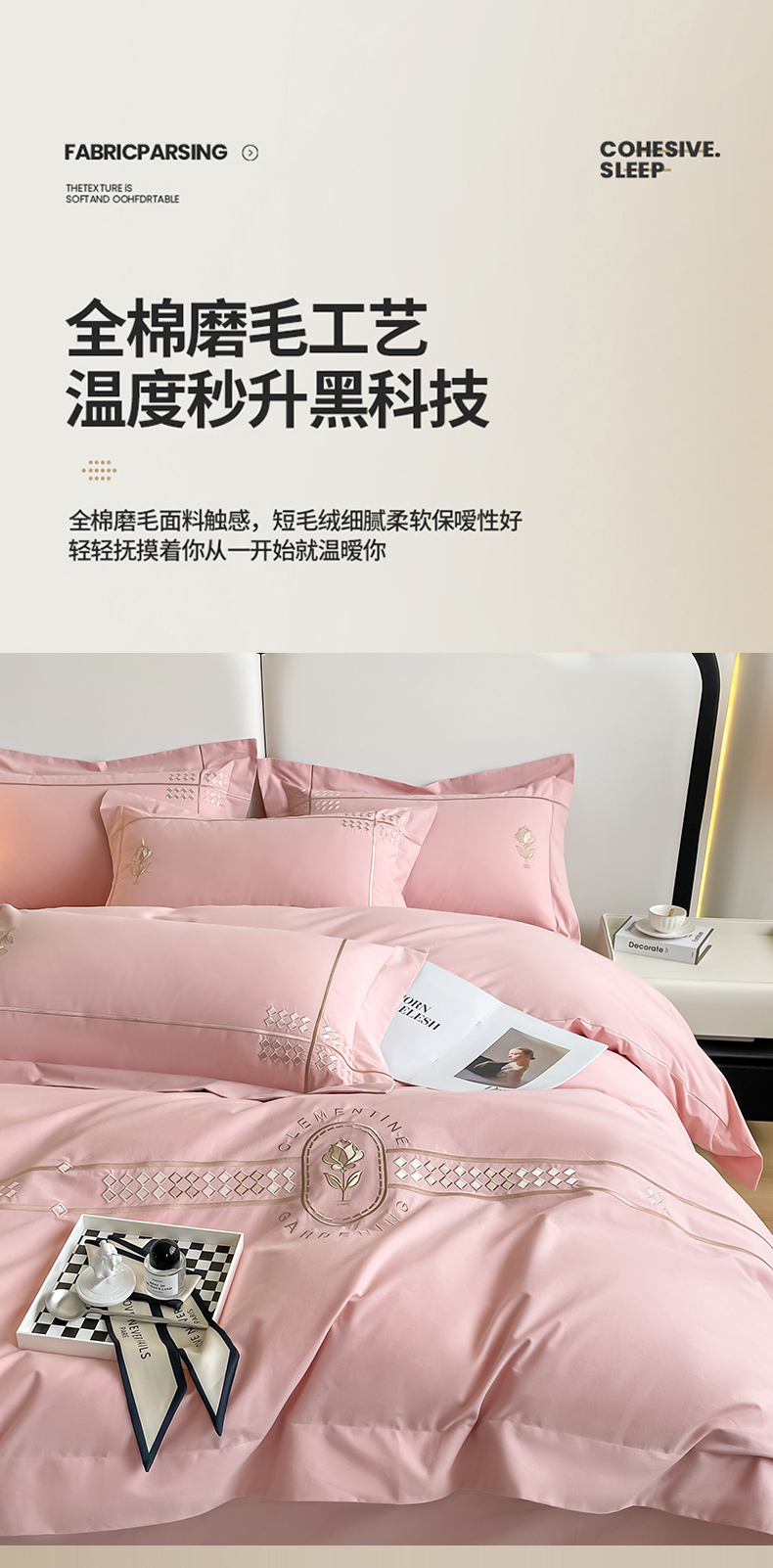 欣宜家纺 2025新款纯棉全棉长绒棉磨毛绣花四件套克里斯系列刺绣套件带礼盒 克里斯-豆沙