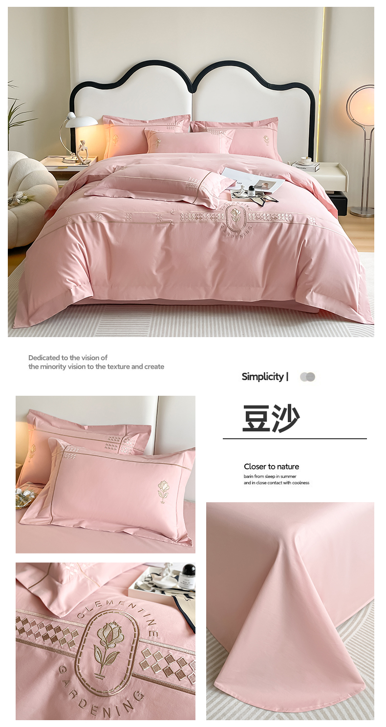(总)欣宜家纺 2026春夏新款60支A类新疆长绒棉刺绣轻奢风四件套,樱花-白粉,樱花-清香绿,樱花-少女粉,樱花-天天蓝,樱花-香芋紫