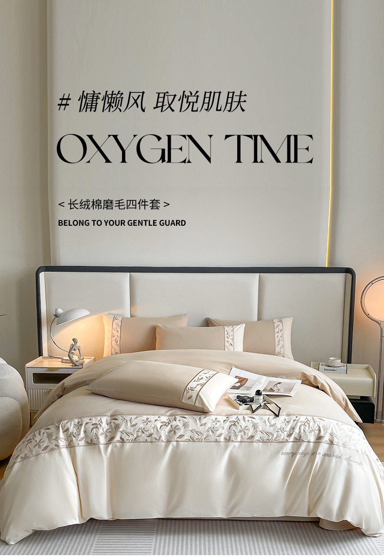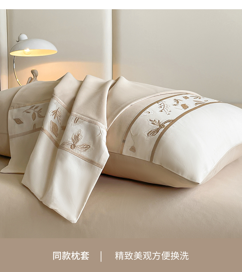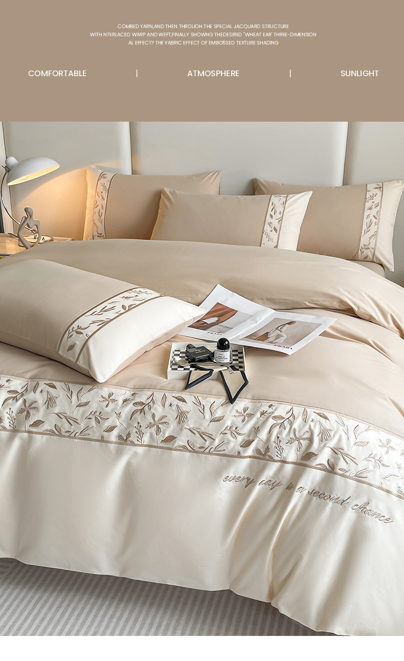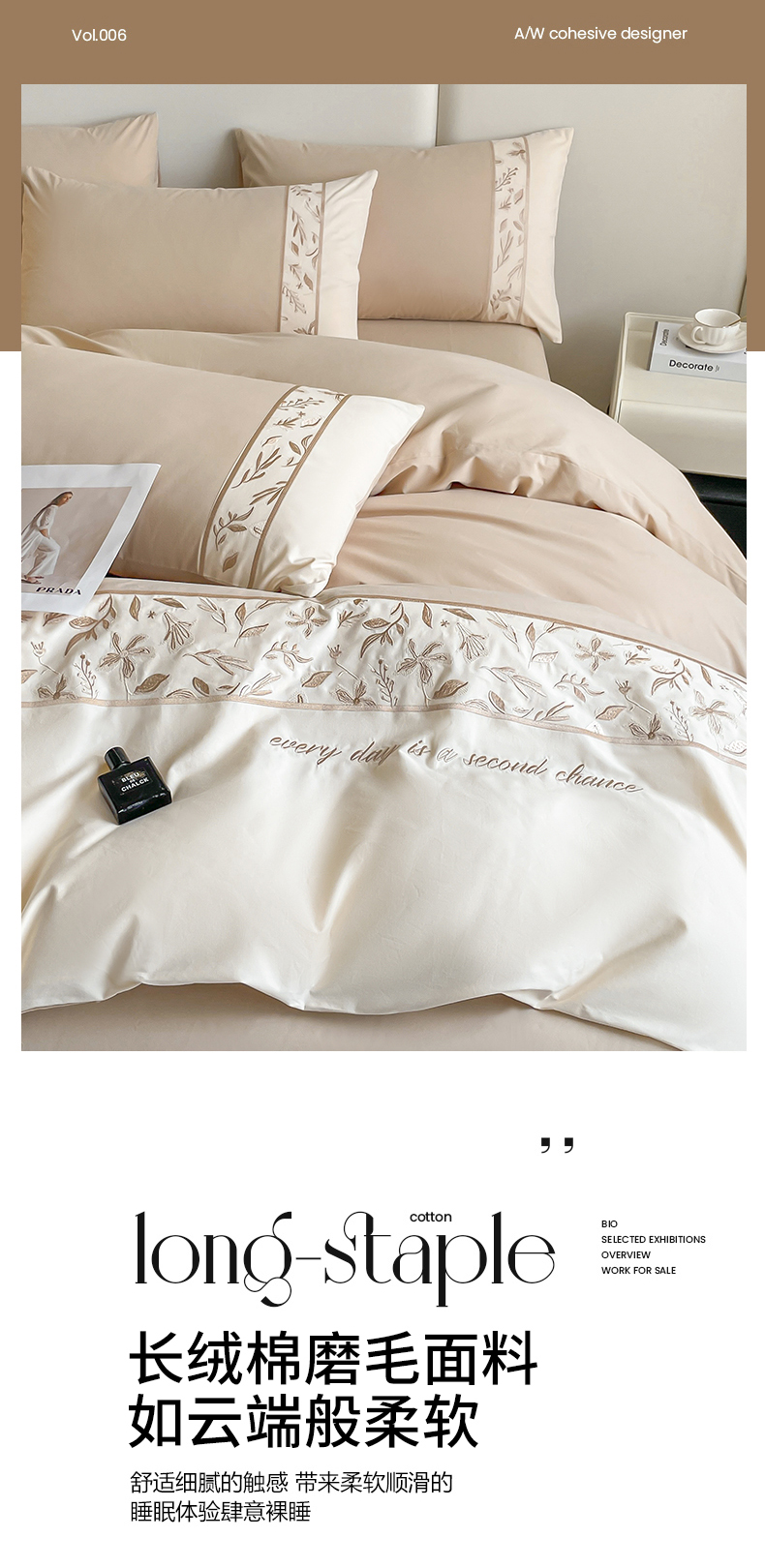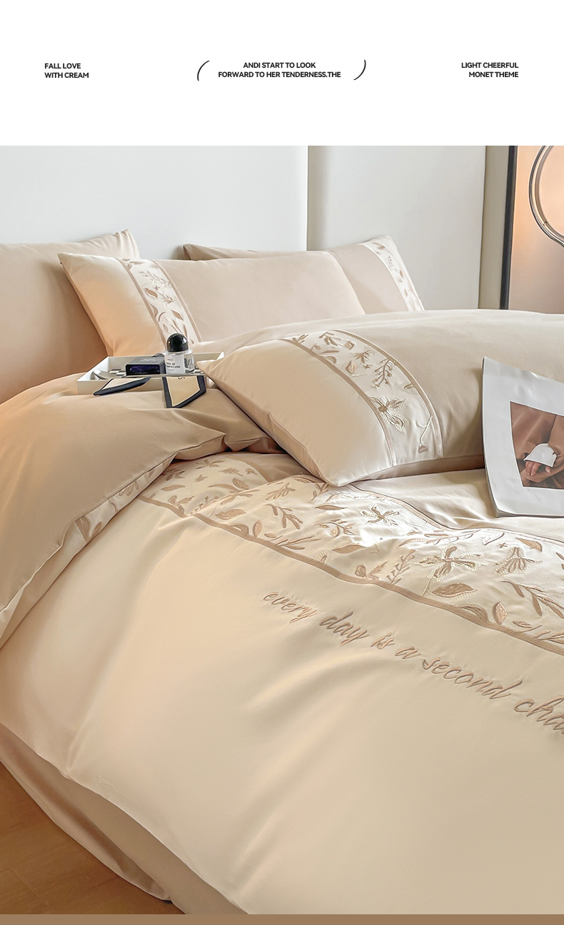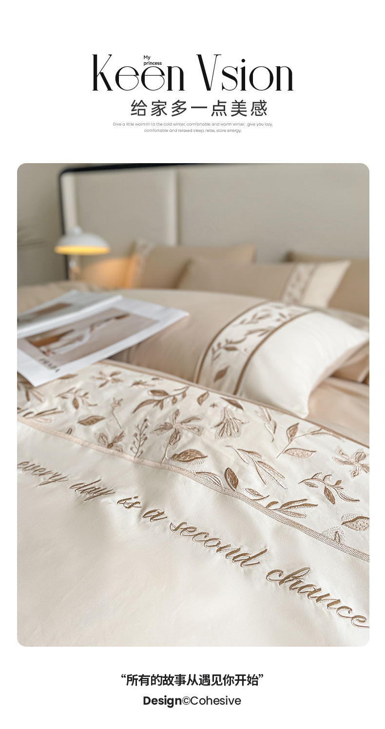 欣宜家纺 2025新款纯棉全棉长绒棉磨毛绣花四件套花漾系列刺绣套件带礼盒 香槟金