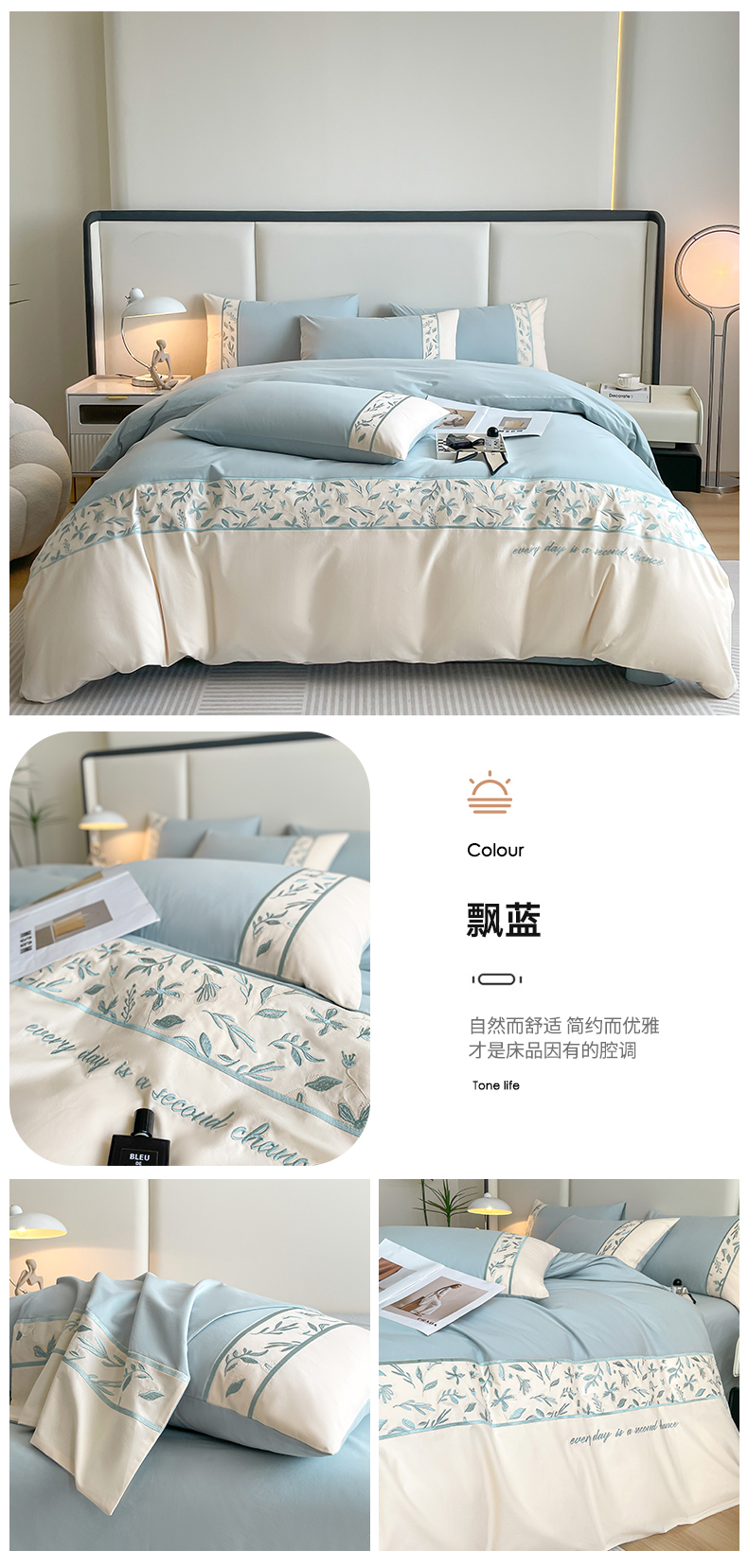 (总)欣宜家纺 2026春夏新款60支A类新疆长绒棉刺绣轻奢风四件套,樱花-白粉,樱花-清香绿,樱花-少女粉,樱花-天天蓝,樱花-香芋紫