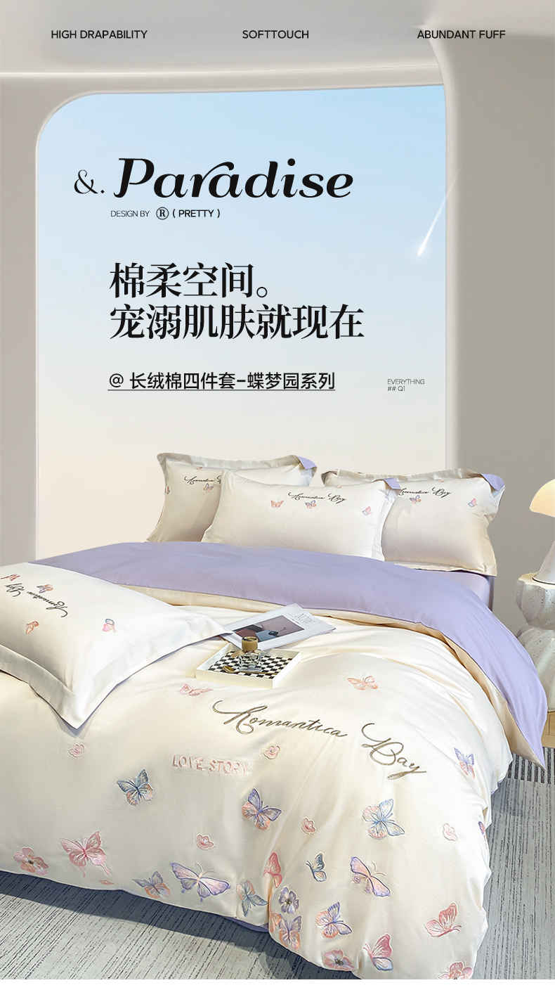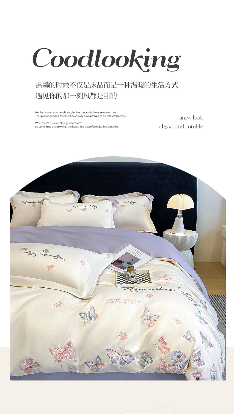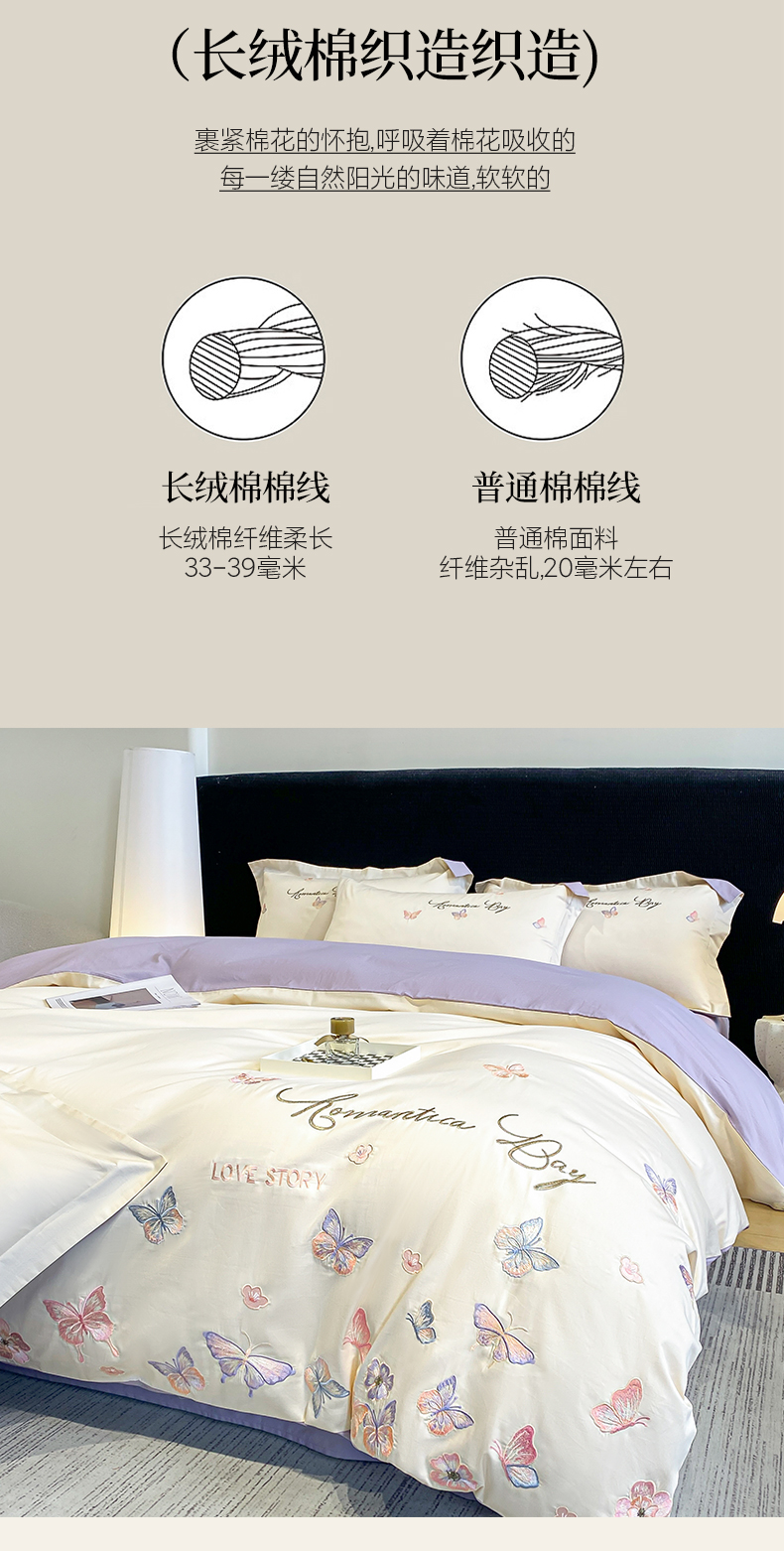 (总)欣宜家纺 2026春夏新款A类60支长绒棉刺绣四件套--蝶纷飞系列,蝶纷飞-粉,蝶纷飞-紫,蝶纷飞-蓝,蝶纷飞-绿