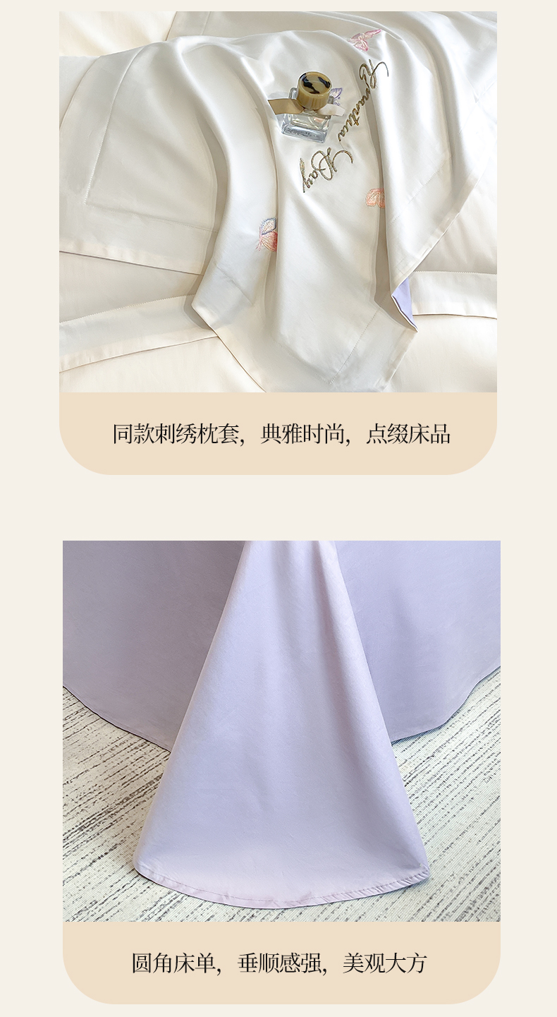 (总)欣宜家纺 2026春夏新款60支A类新疆长绒棉刺绣全棉四件套纯棉床品套件,玛丽-香芋紫,玛丽-梦幻蓝,玛丽-奶白,玛丽-轻奢粉,玛丽-石灰