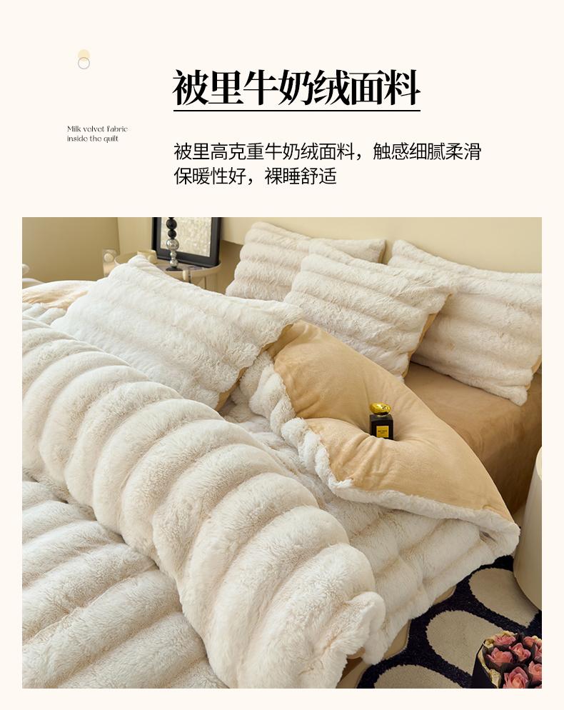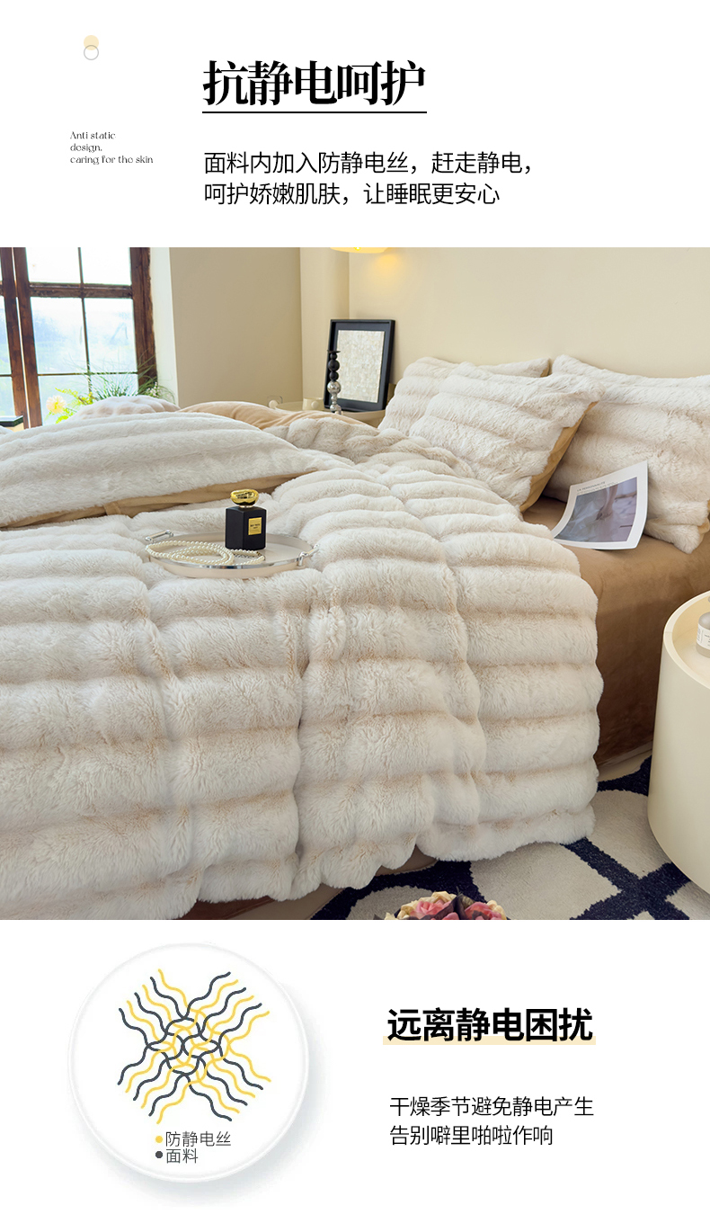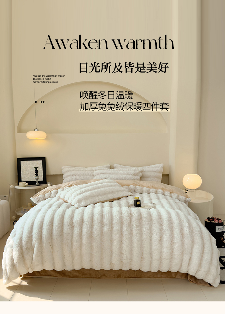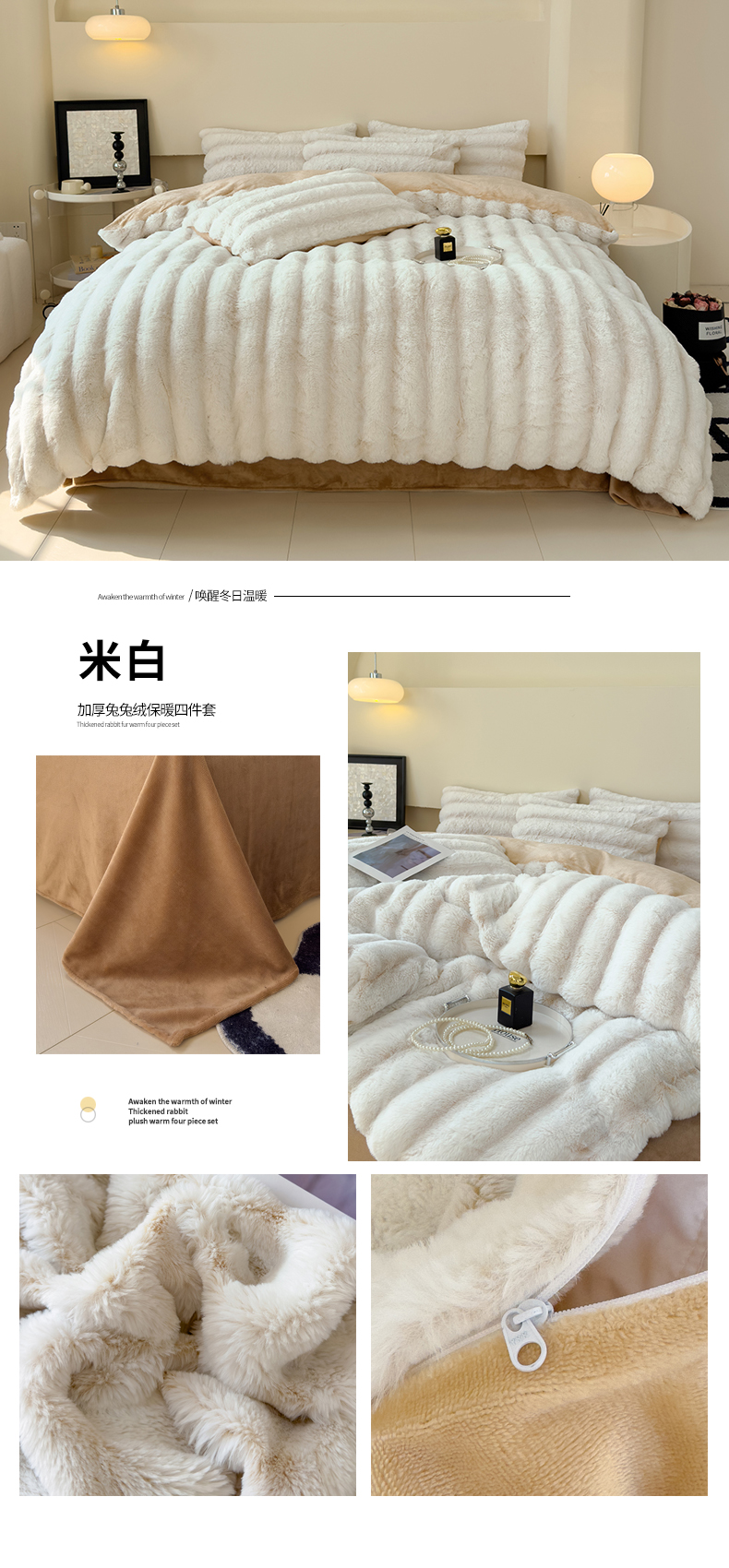 欣宜家纺 2025新款兔兔绒牛奶绒加厚兔毛保暖四件套 米白