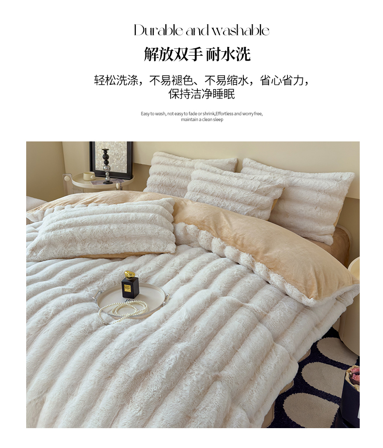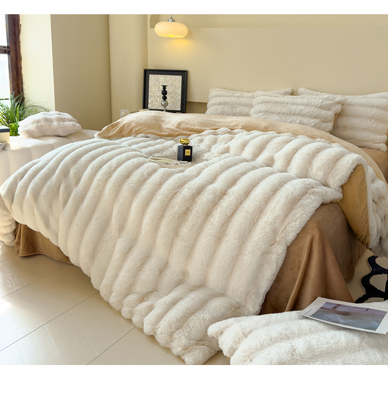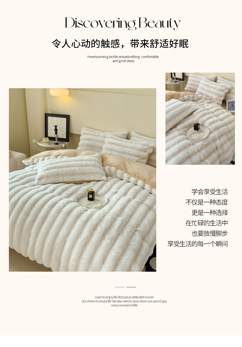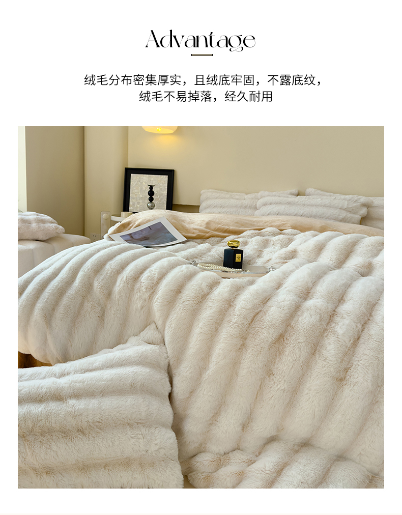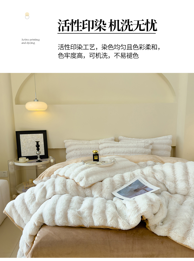 欣宜家纺 2025新款兔兔绒牛奶绒加厚兔毛保暖四件套 米白
