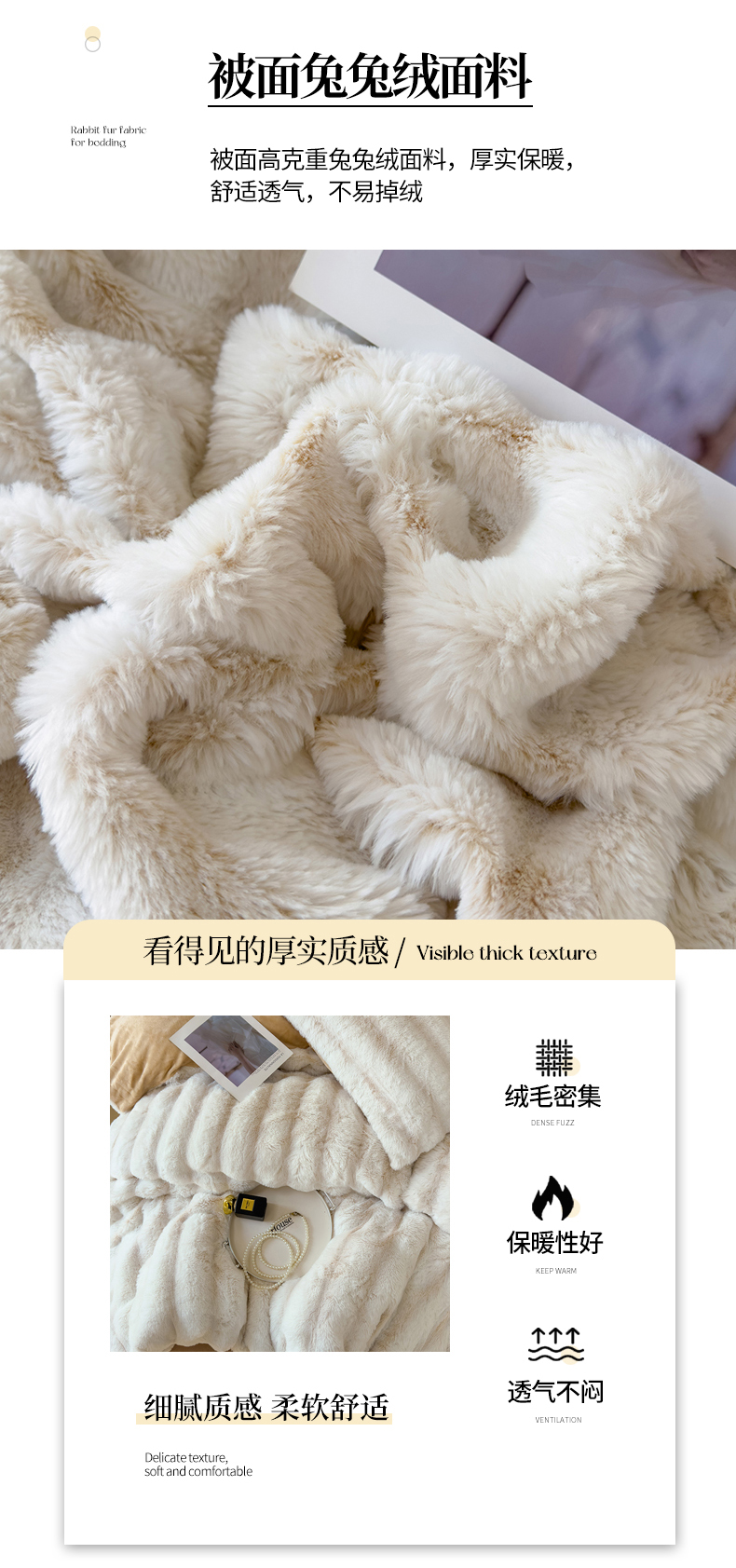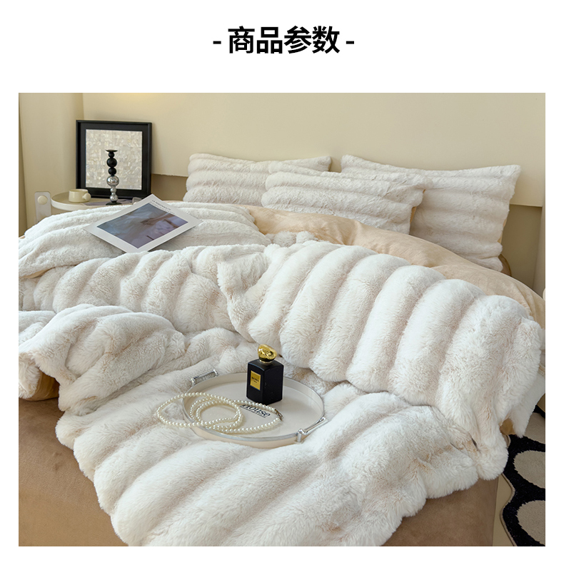 商品名称:欣宜家纺 2025新款兔兔绒牛奶绒加厚兔毛保暖四件套 米白