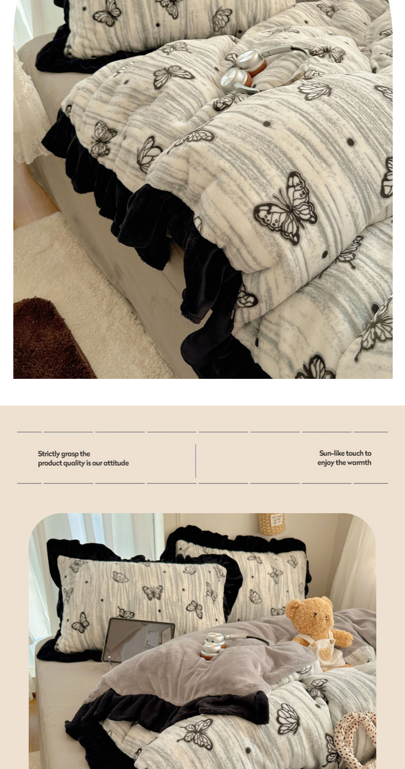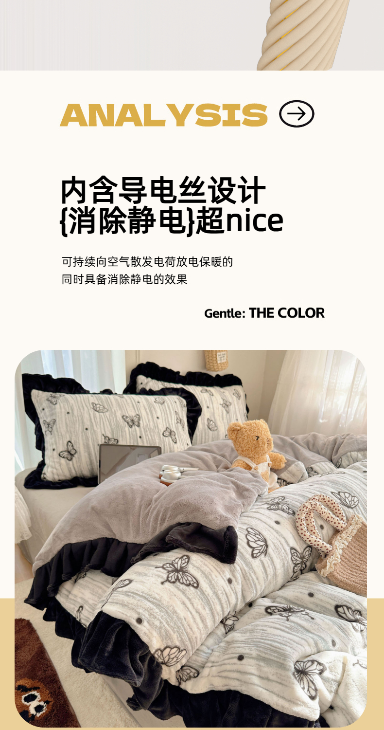 商品名称:(总)欣宜家纺 2025新款蝴蝶烂花牛奶绒雕花绒花边款四件套