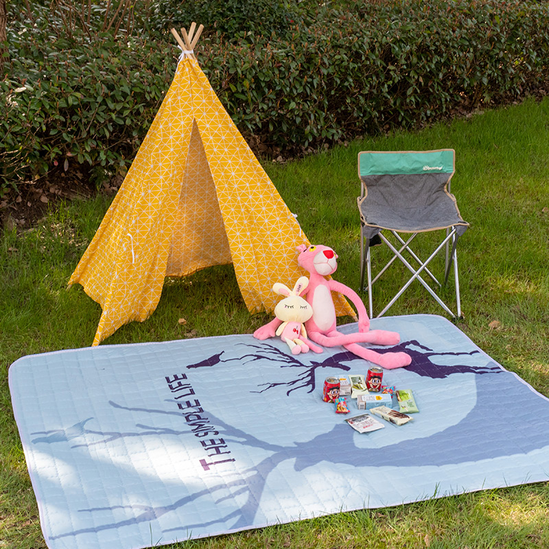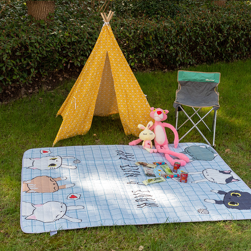 欣宜家纺 2025新款INS风绗缝加厚防水野餐草坪垫 多彩笑脸