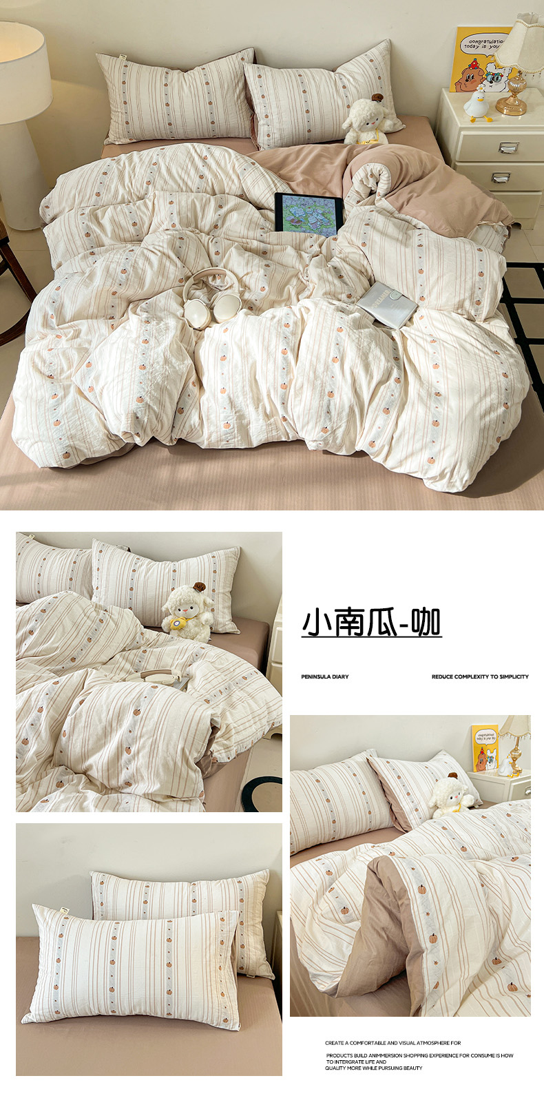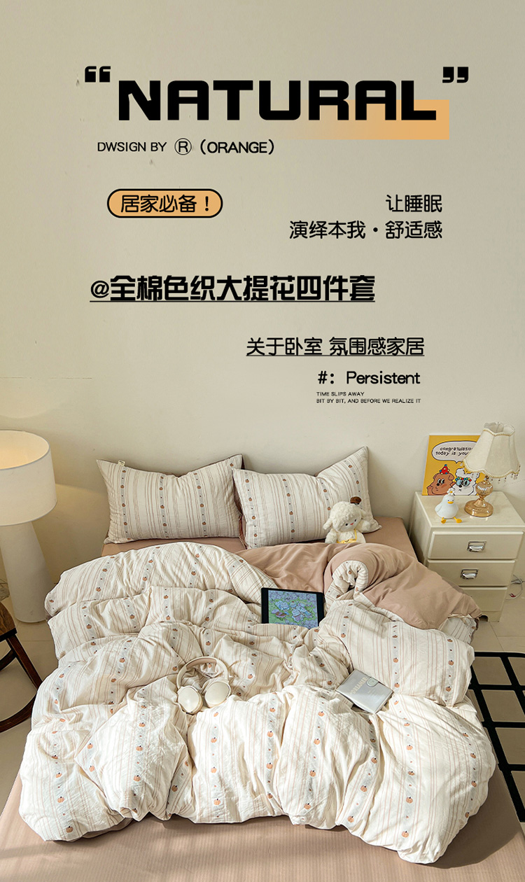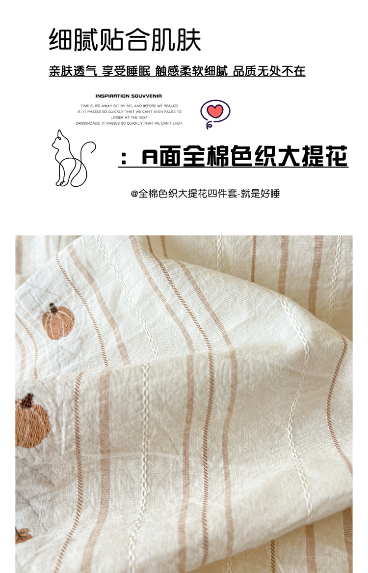 商品名称:锦彩家居 2026新款全棉色织提花剪花四件套小清新ins风小红书推荐——甜悠系列(提供买家秀) 小南瓜-咖