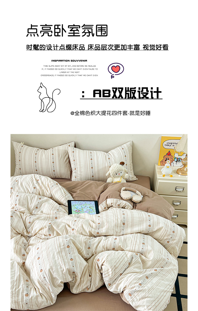 (总)锦彩家居 2026新款全棉色织提花剪花四件套小清新ins风小红书推荐——甜悠系列(提供买家秀),可爱兔-粉,花颜-咖,花颜-蓝,可爱兔-咖,小南瓜-灰,小南瓜-咖