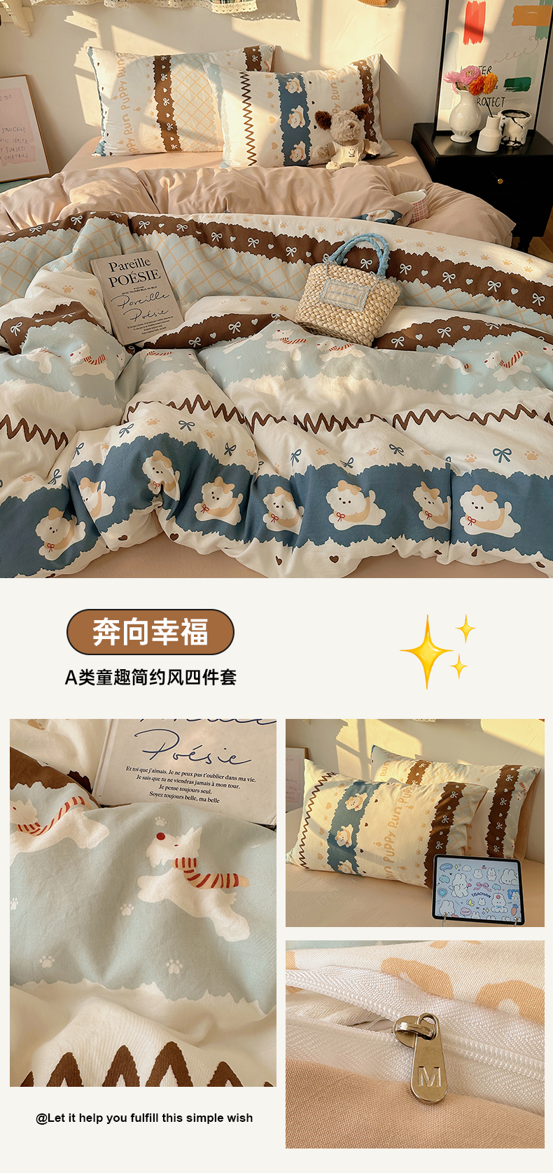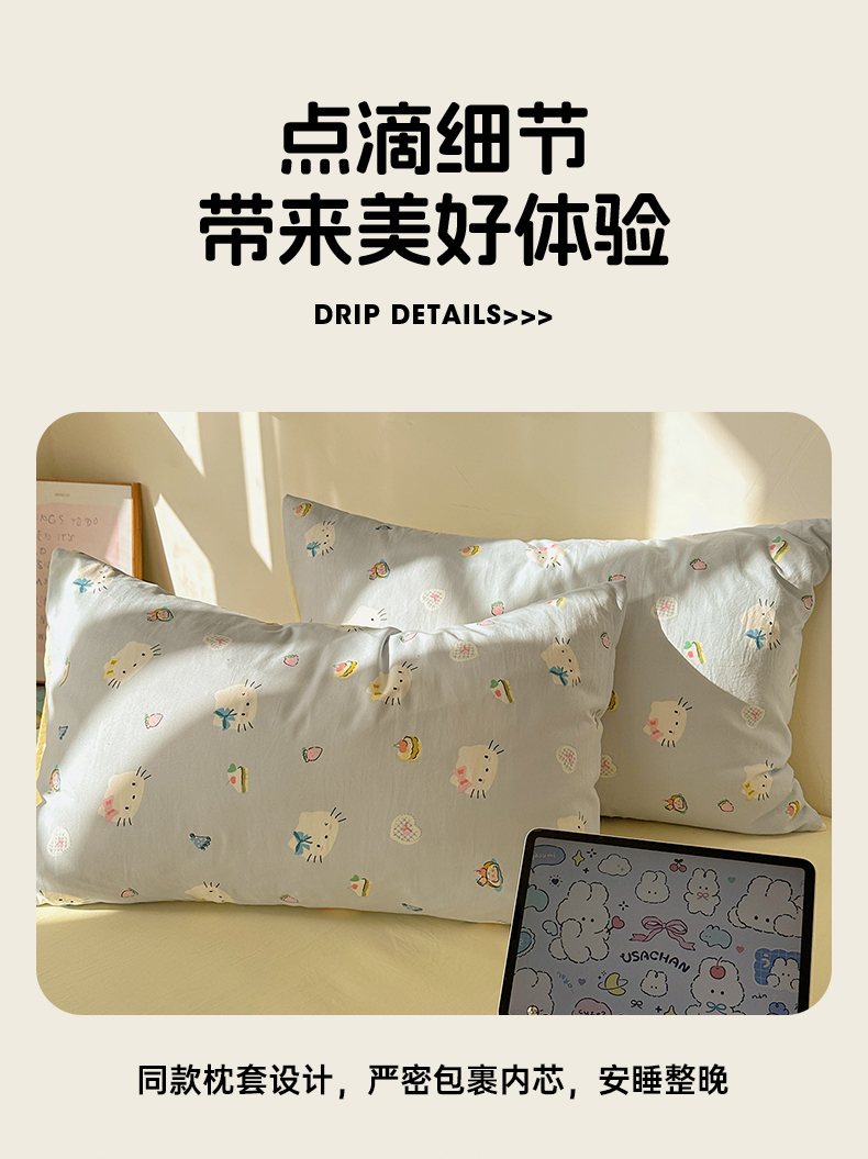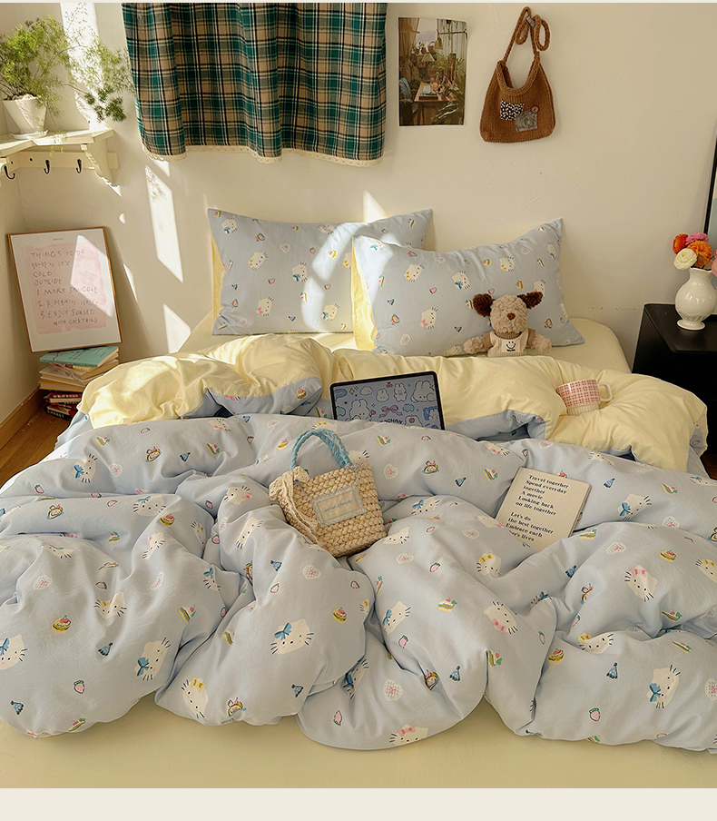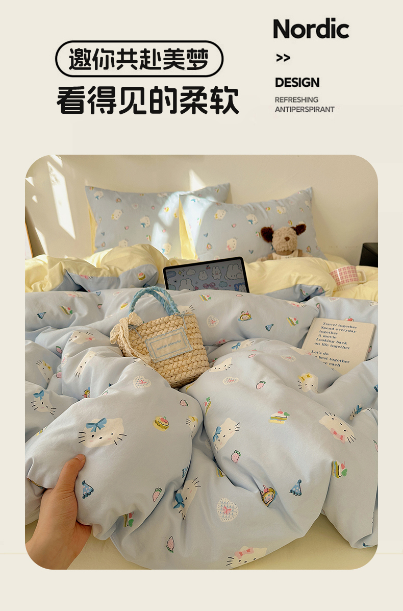 当前位置: 91家纺网 > 商品网购 > 床品套件 > 四件套 > 水洗棉四件套 > 沐芷 2026 【提供买家秀】水洗棉四件套A类简约小清新床上用品床笠款被套床单三件套被罩卡通可爱 猫屿甜心