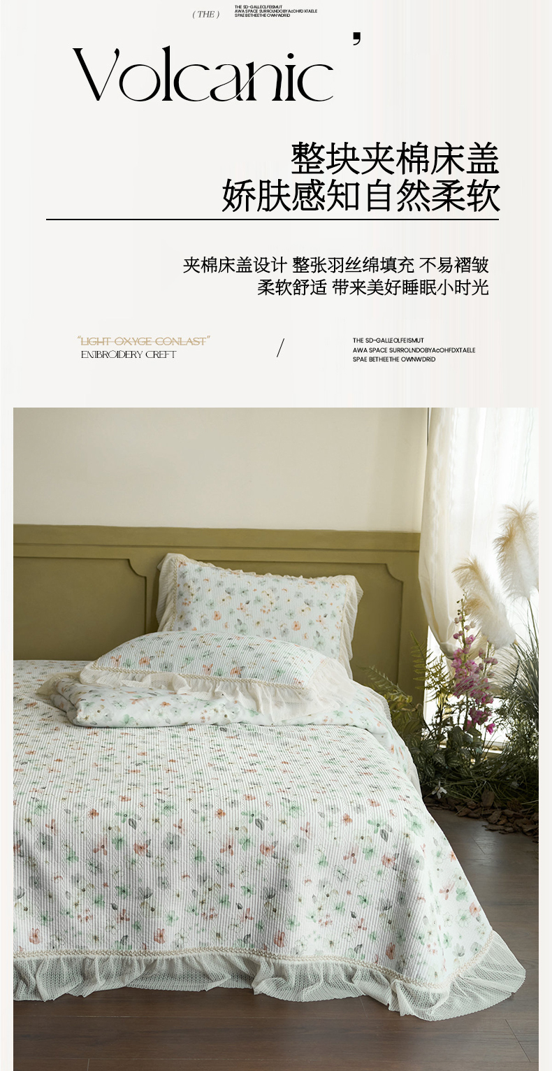 • 91家纺网 家纺一手货源 找家纺 源舜家纺 2026新款莱赛尔天丝床盖三件套夏被四件套 花涧