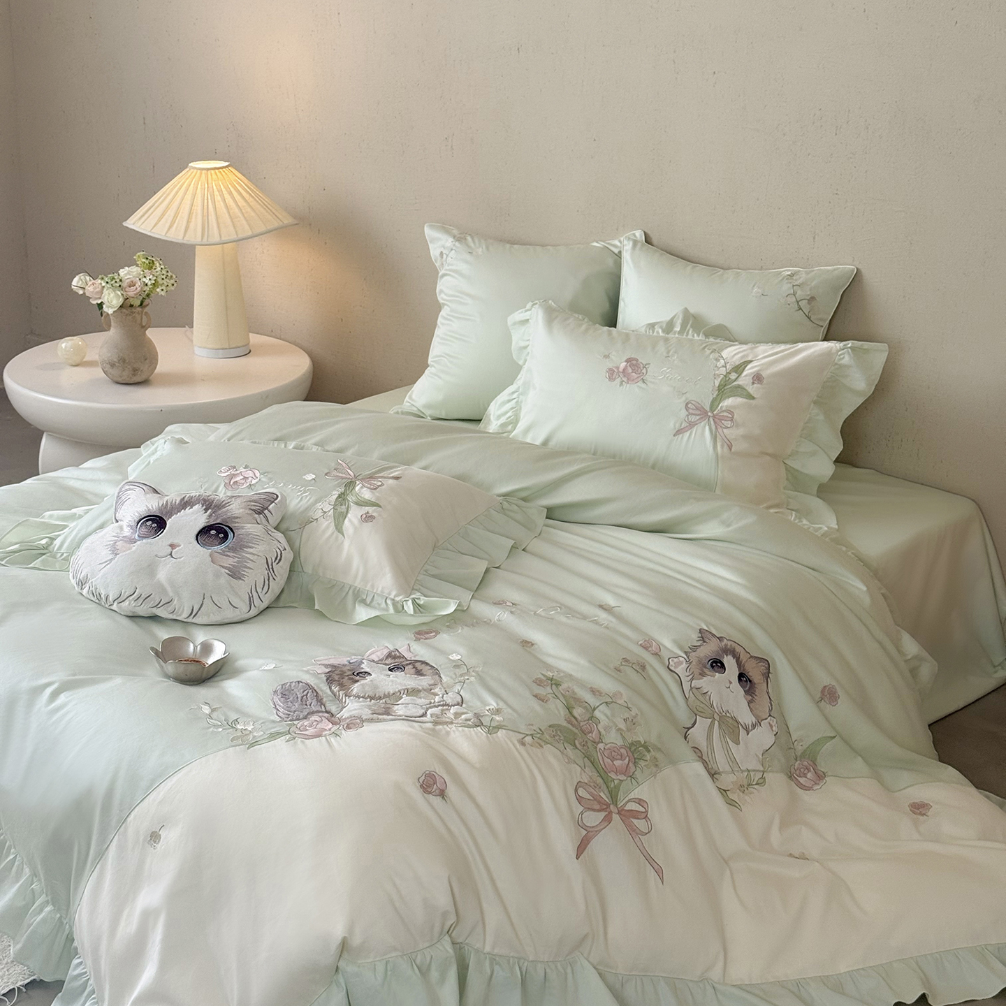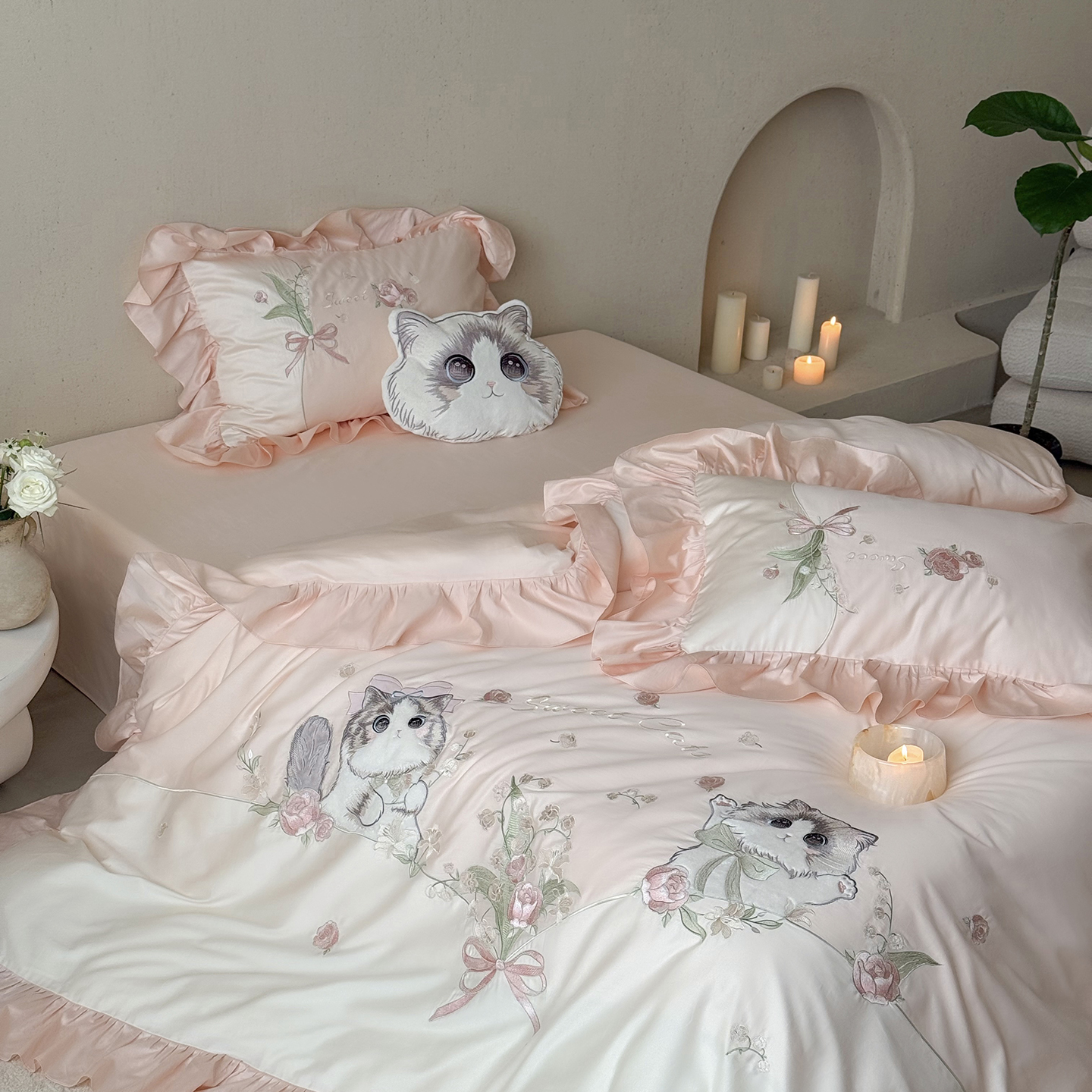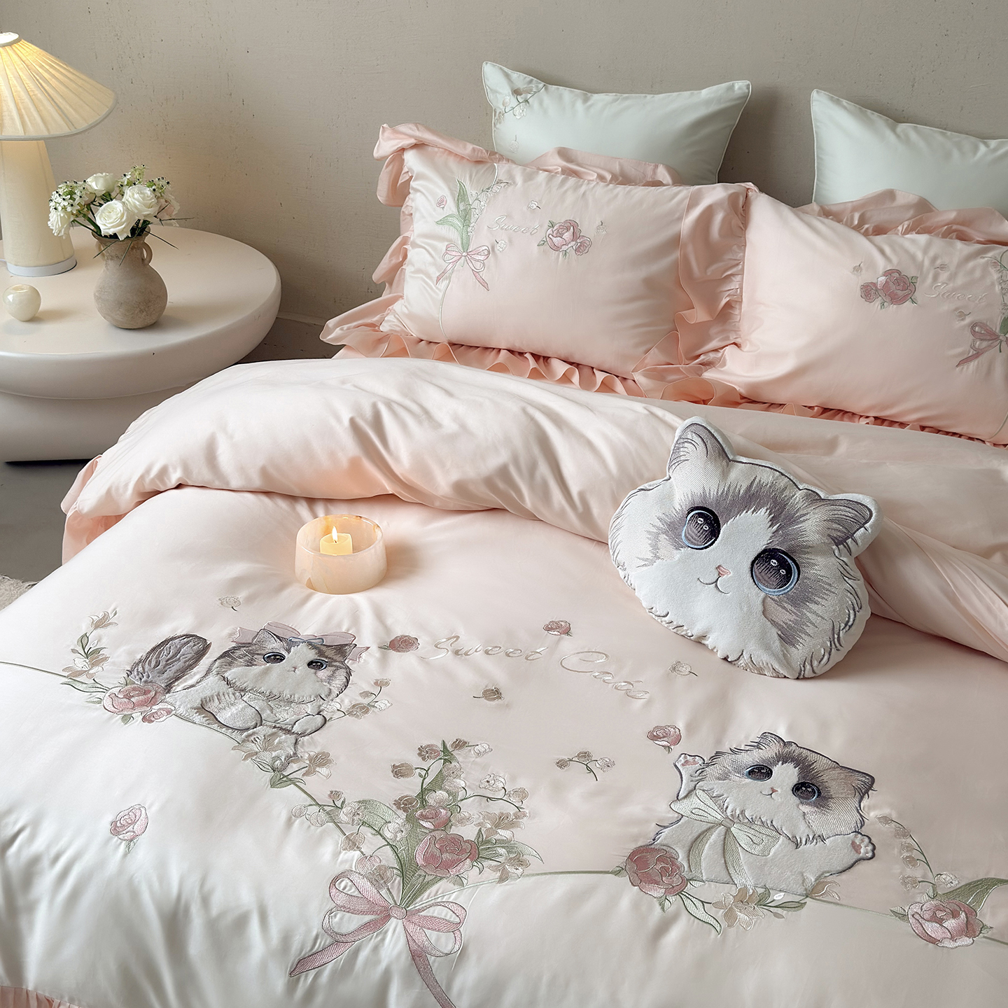 (总)MIU缪家居 2025新款秋冬牛奶绒四件套桃花猫,桃花猫