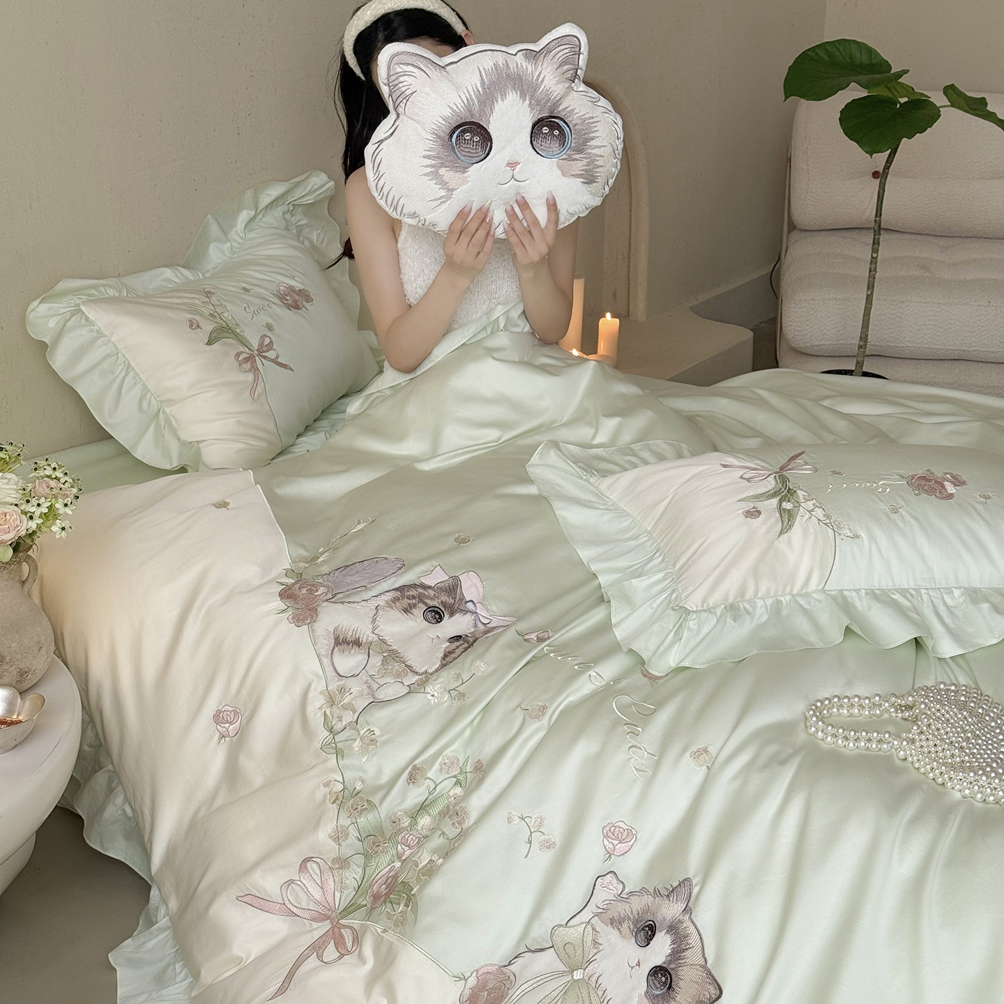 (总)MIU缪家居 2025新款60支兰精天丝四件套,沁山茶-半夏绿,沁山茶-清雅白,沁山茶-山茶粉