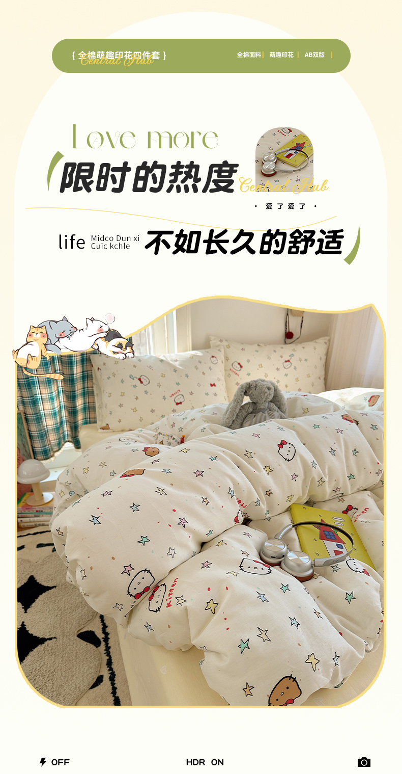 (总)瑞莱 2026春夏新款全棉纯棉印花韩系卡通花边四件套,丛间蜜语,爱丽丝花园,爱心兔兔,草莓小熊,欢乐季,秘境,小萝莉,小猫甜品屋,樱桃小象,樱桃甜宠,韩版花仙兔,奶油阿布蓝