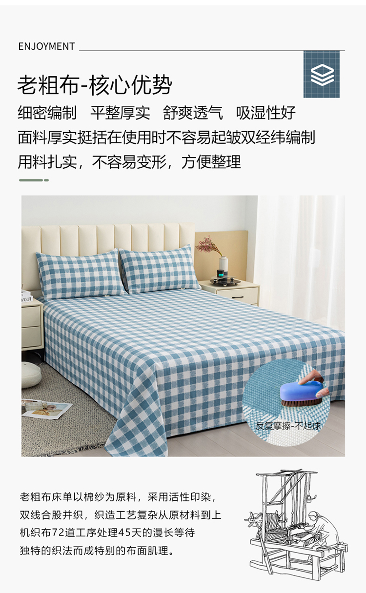 (总)居美良品 2026新款无印风正宗加厚老粗布床单单件枕套三件套可做凉席,蓝白-格,宝石-青,冰川-灰,波澜-条,淡雅-粉,典雅-紫,格韵-蓝,格韵-绿,简尚-粉,嫩绿,暖光-黄,浅灰,浅蓝,清风-绿,清雅-灰,深灰,夏日-橙,星辰-灰,星辰-玉,雅致-粉,雅致-灰,雅致-绿,阳光蓝格,月白-蓝