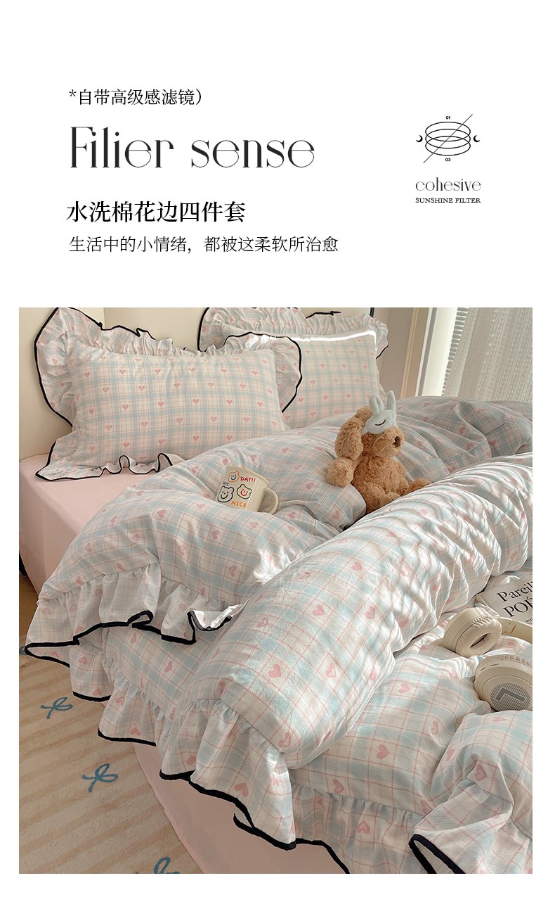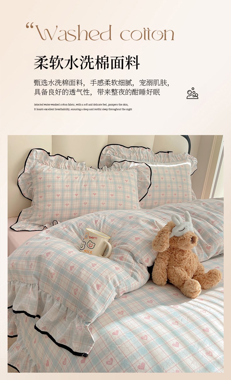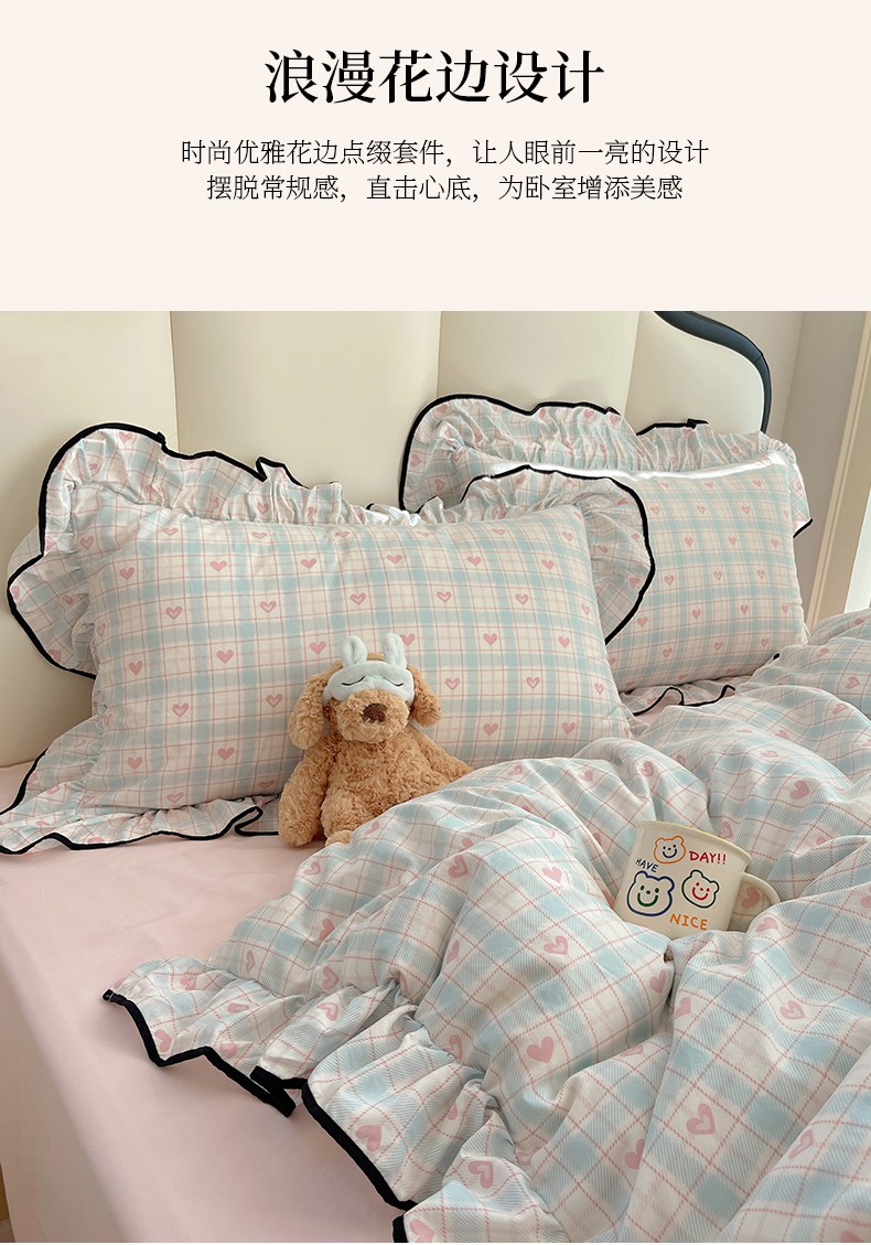 当前位置: 91家纺网 > 商品网购 > 床品套件 > 四件套 > 水洗棉四件套 > 韩巢家纺 2026新款水洗棉花边款四件套 温暖粉心【大花边款】