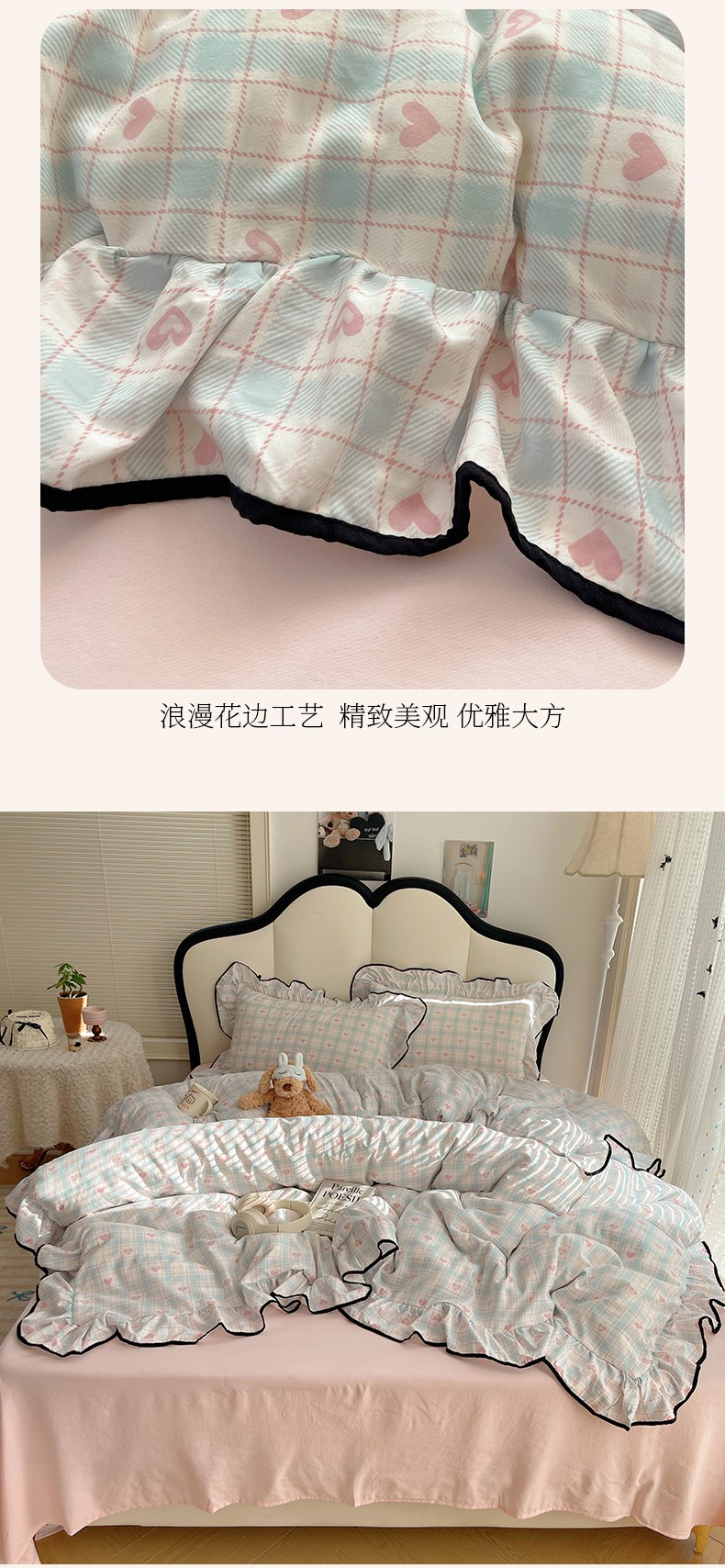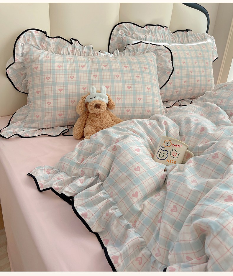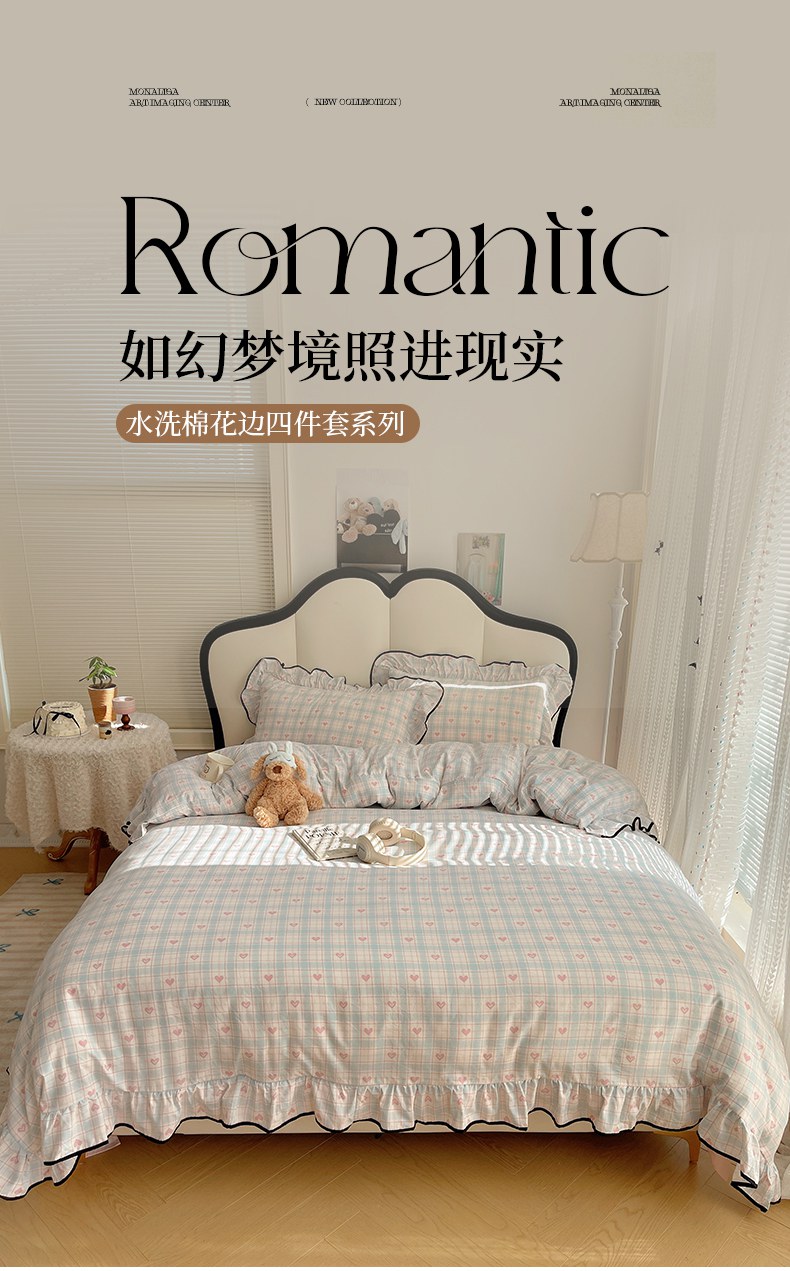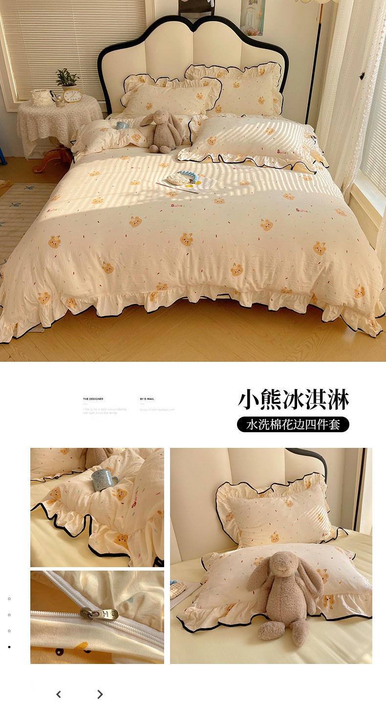 当前位置: 91家纺网 > 商品网购 > 床品套件 > 四件套 > 水洗棉四件套 > 韩巢家纺 2026新款水洗棉花边款四件套 温暖粉心【大花边款】
