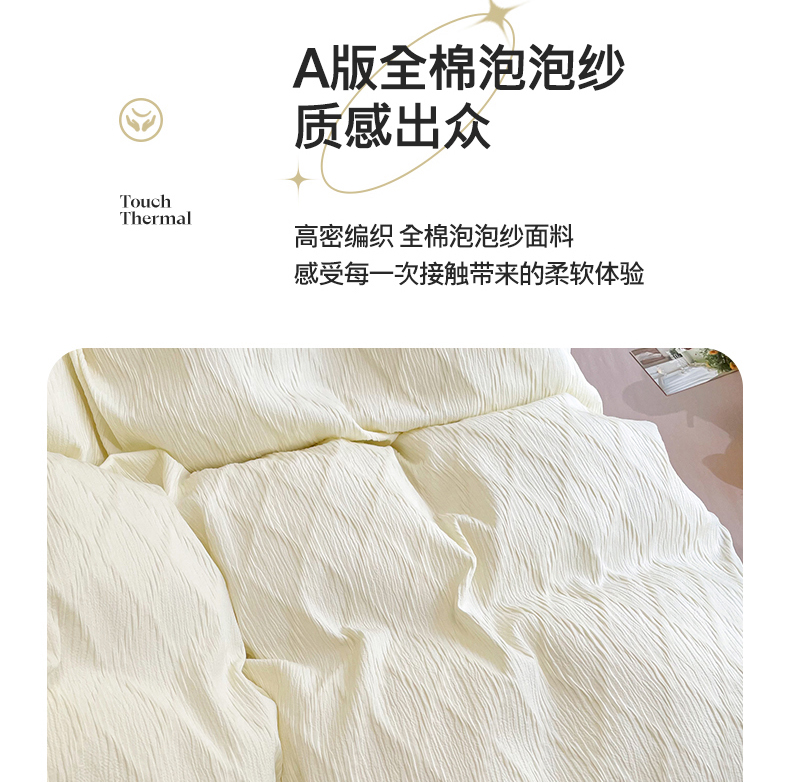 当前位置: 91家纺网 > 商品网购 > 床品套件 > 四件套 > 全棉普通四件套 > 琪格格纺织 2026新款纯棉色织肌理纹提花华夫格纯棉轻奢简约款四件套 泡泡纱米白奶咖