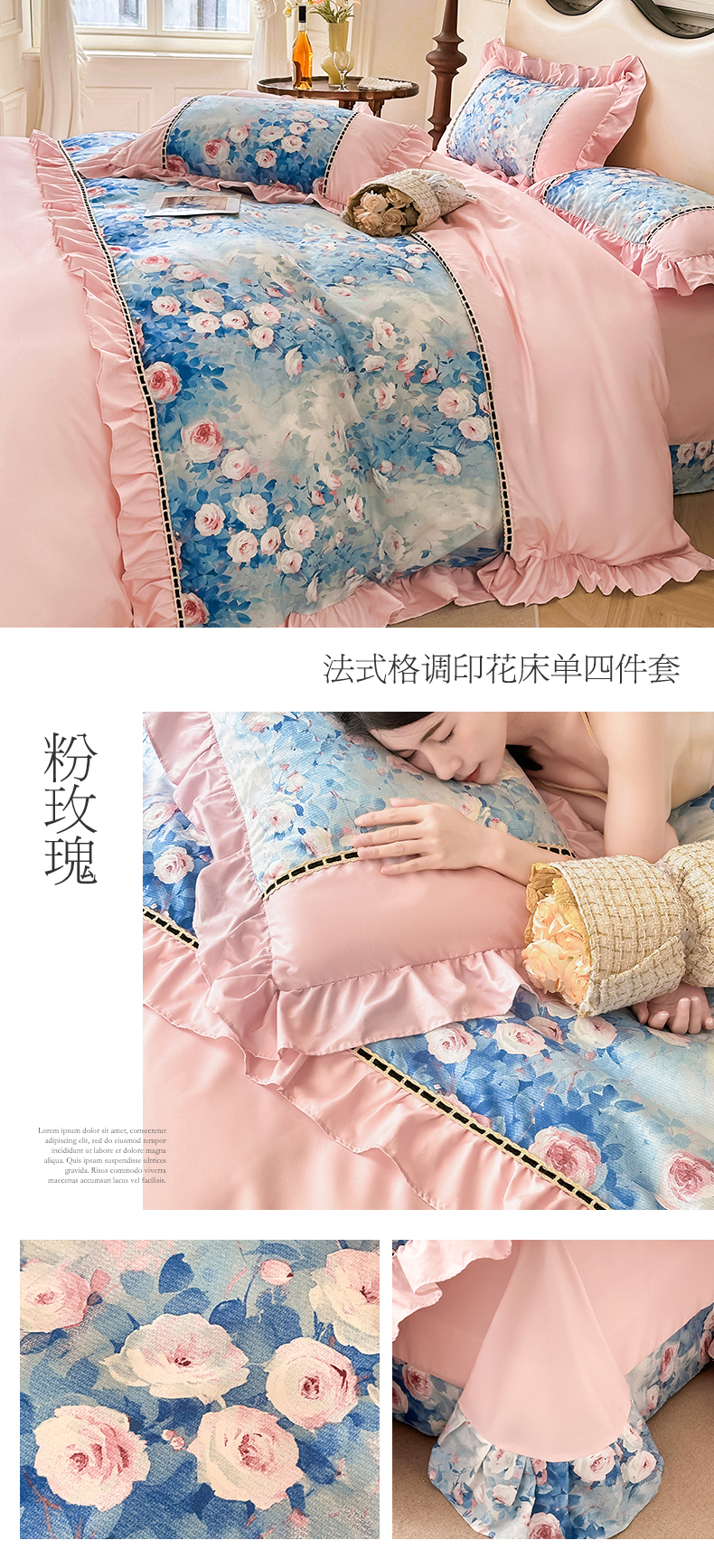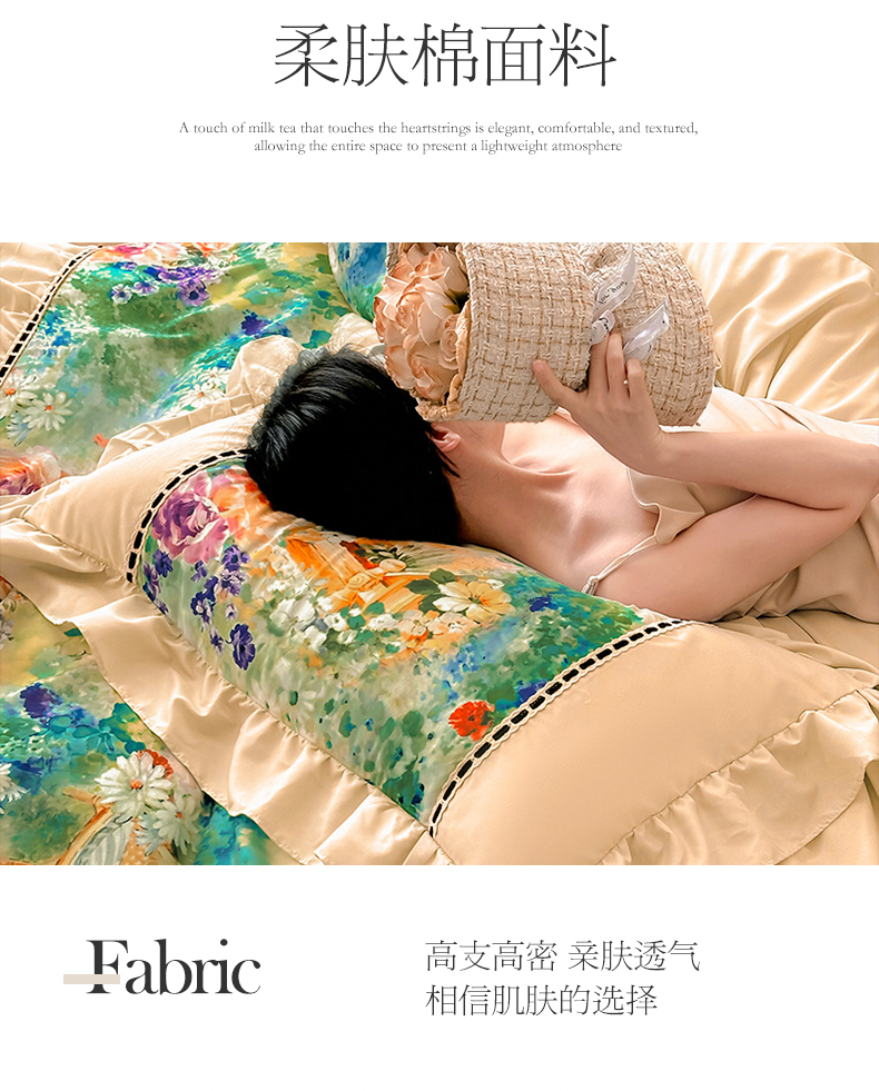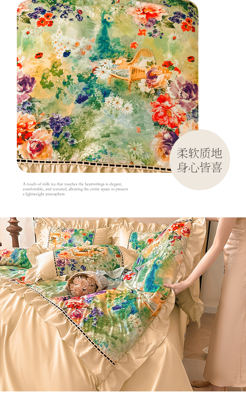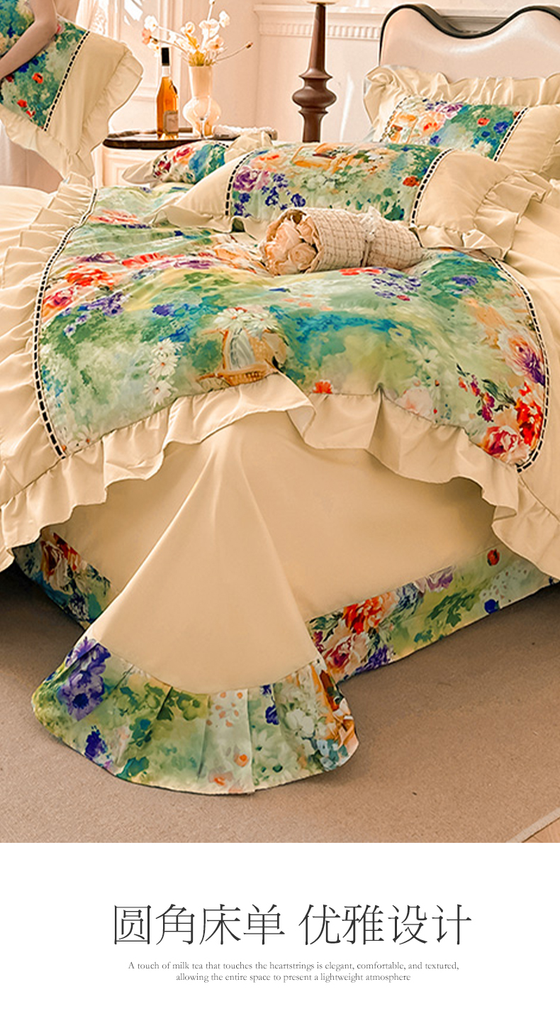 爱彼家纺 2026春夏新款法式油画格调双拼印花贡棉轻奢高端四件套-油画系列 油画-蓝铃花