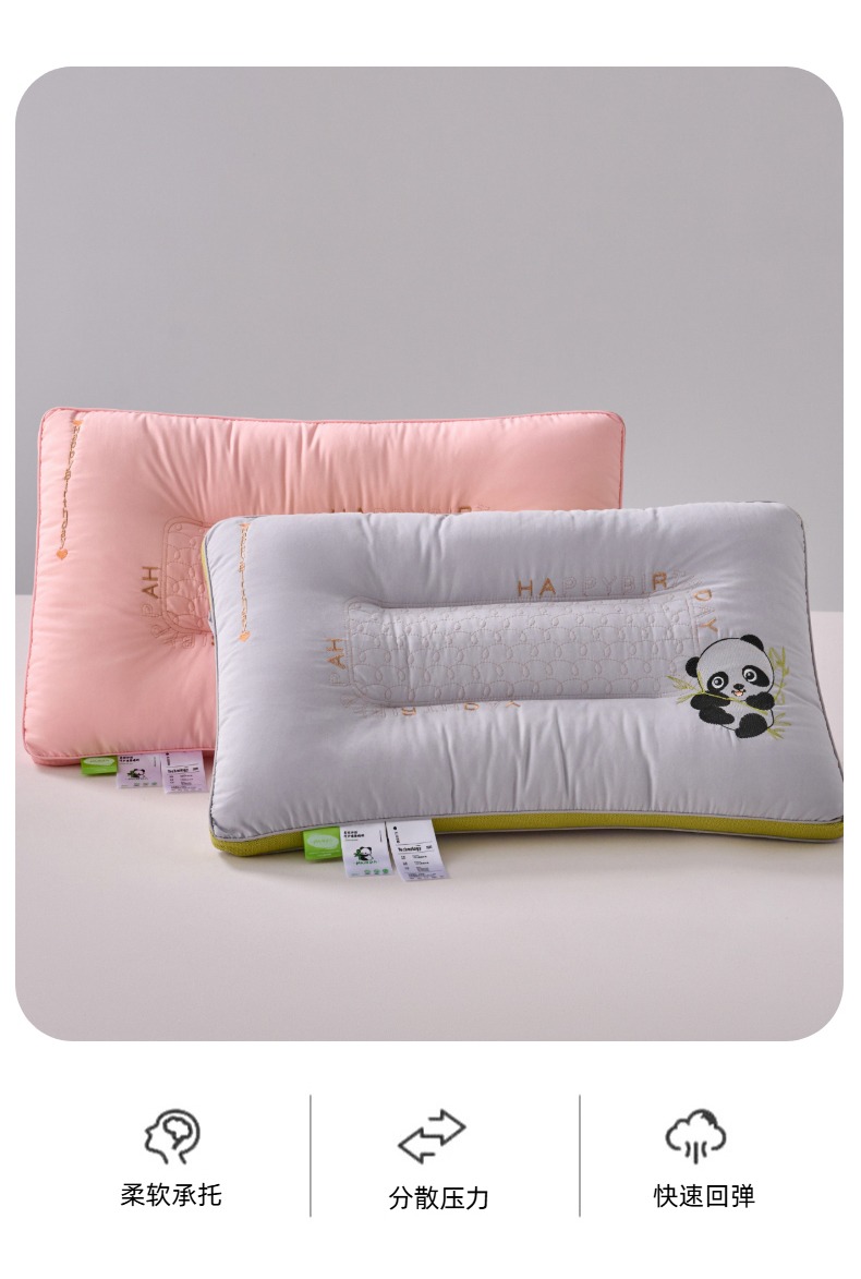 商品名称:怡薇格枕芯 2026新款刺绣熊猫羽丝绒护颈枕枕头枕芯 亲肤羽丝绒枕-粉