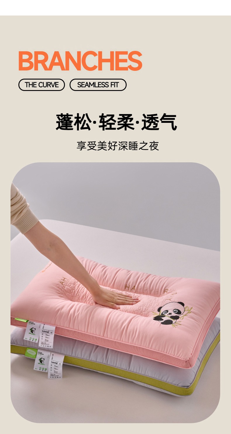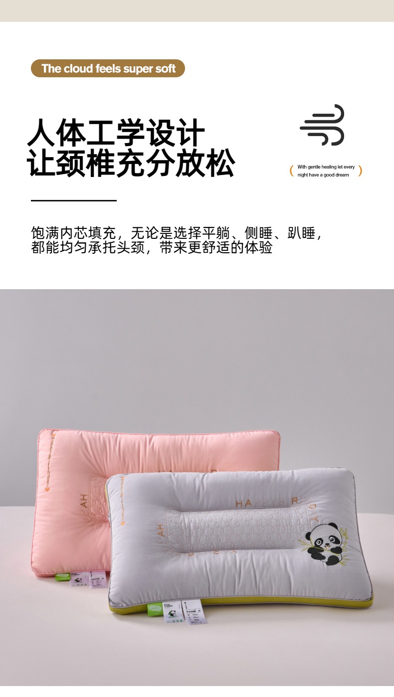 (总)怡薇格枕芯 2026新款刺绣熊猫羽丝绒护颈枕枕头枕芯,亲肤羽丝绒枕-粉,亲肤羽丝绒枕-白,亲肤羽丝绒枕-灰