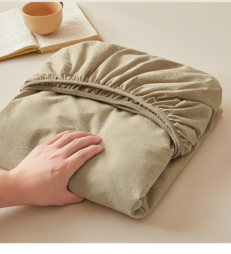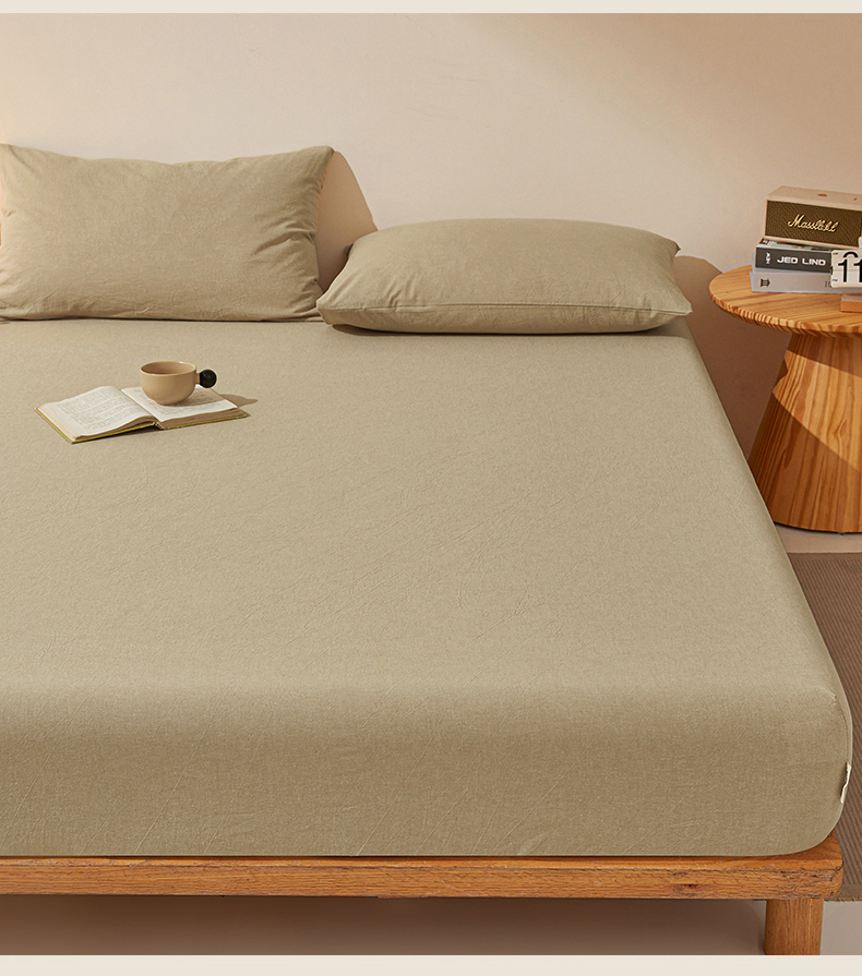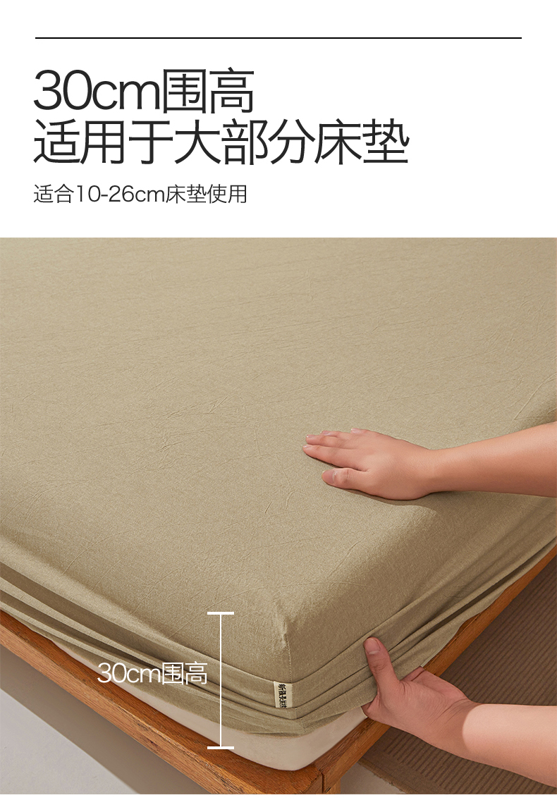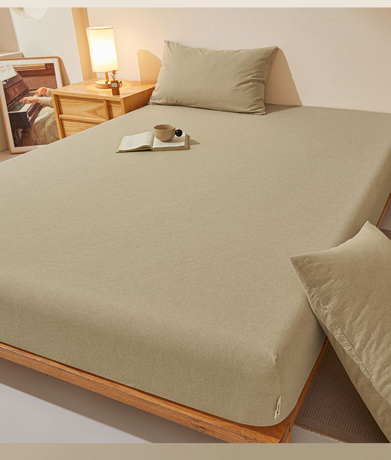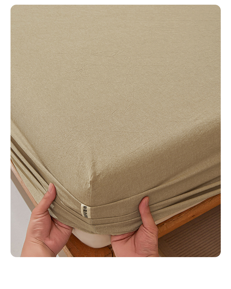 • 91家纺网 家纺一手货源 找家纺 女子家纺 2026新款全棉色织水洗纯色条格纯棉单层床笠床垫保护套 拾忆-浅咖