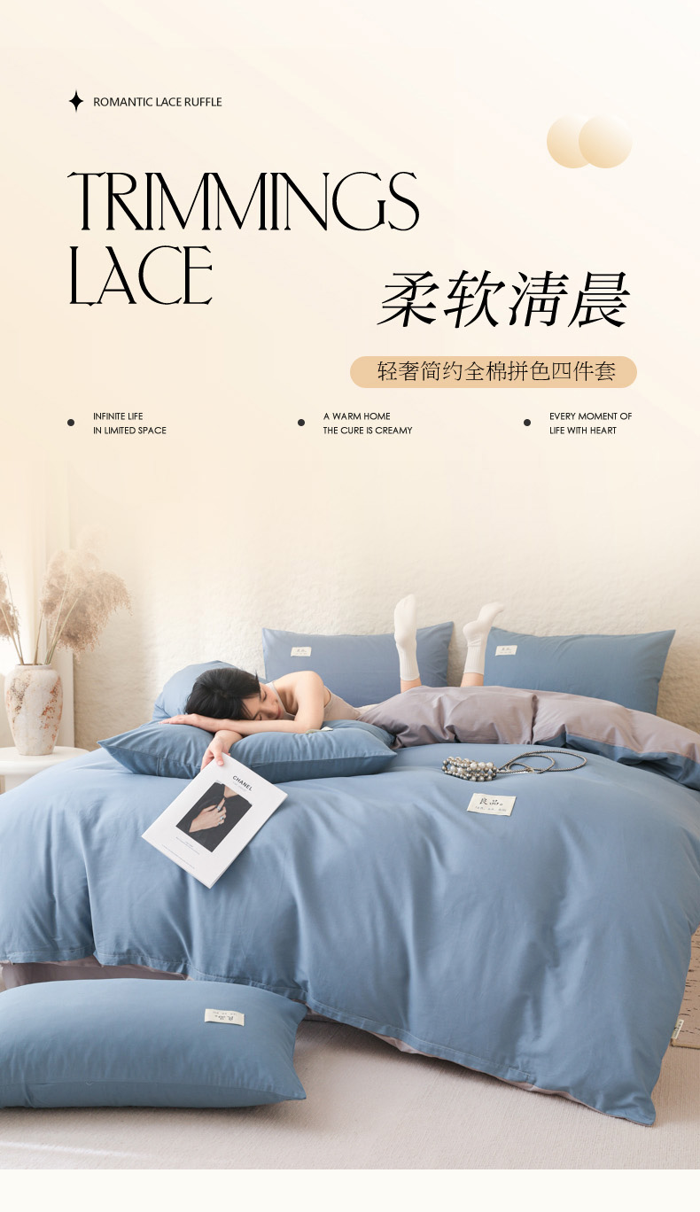 (总)眠博士 2026新款轻奢简约全棉40支拼色四件套
