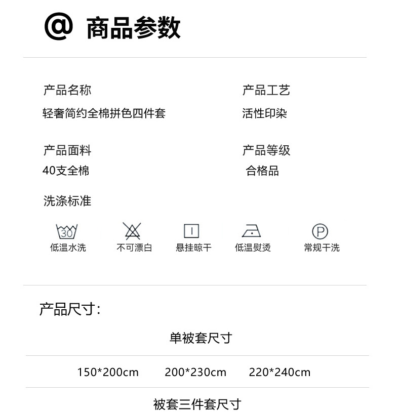 商品名称:(总)眠博士 2026新款轻奢简约全棉40支拼色四件套