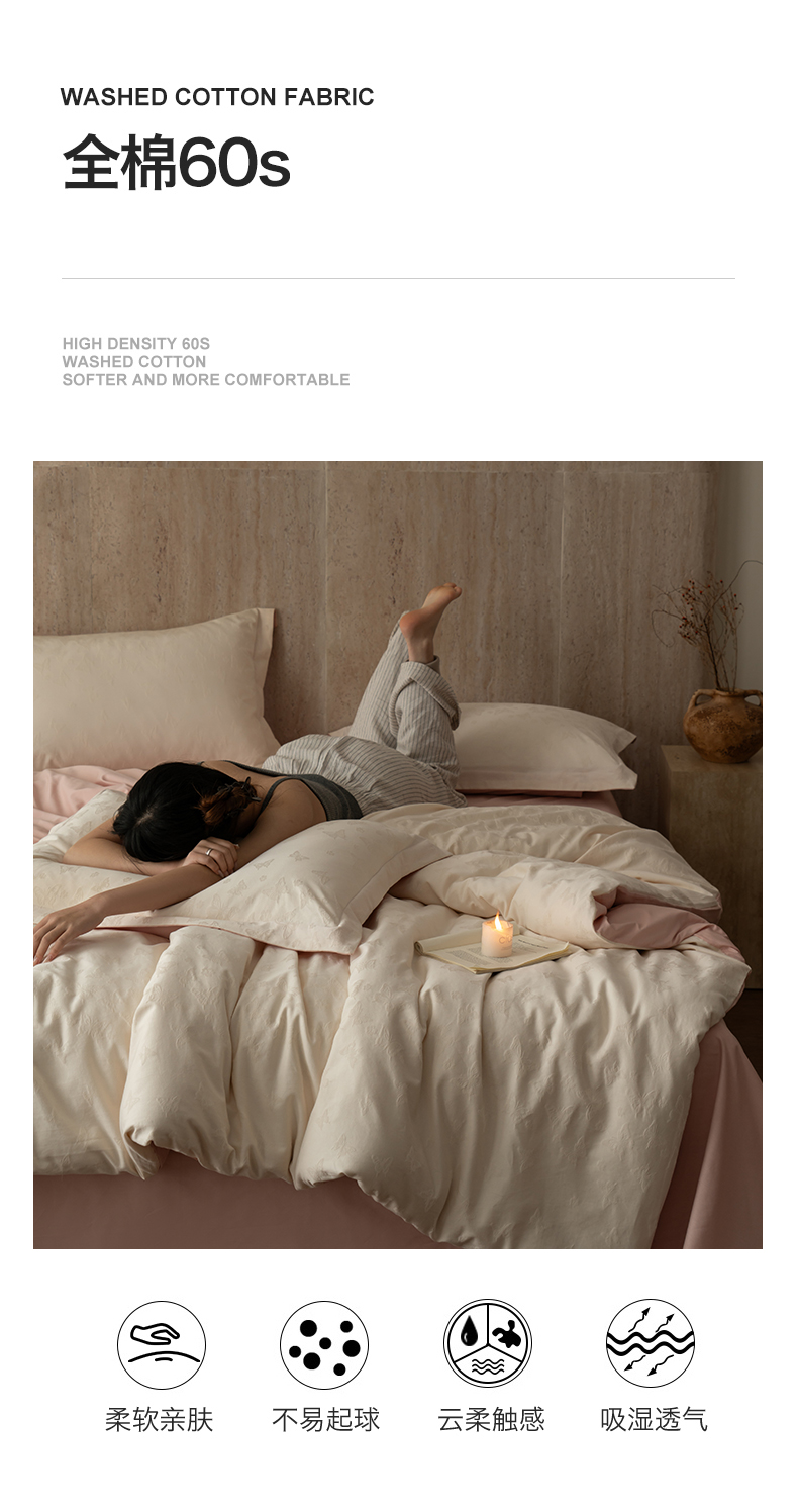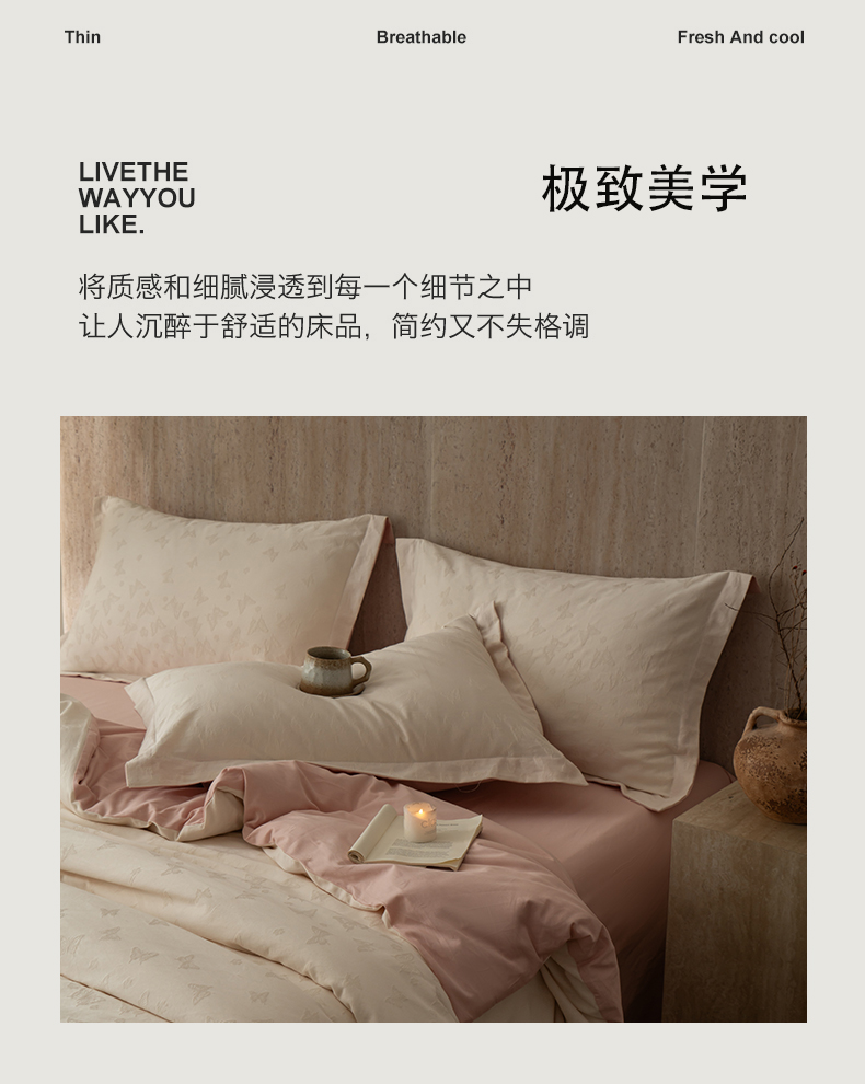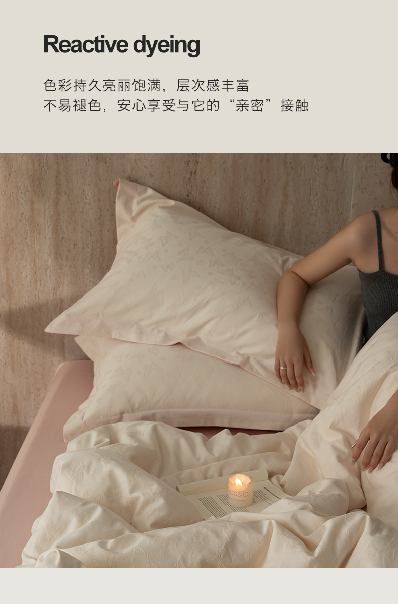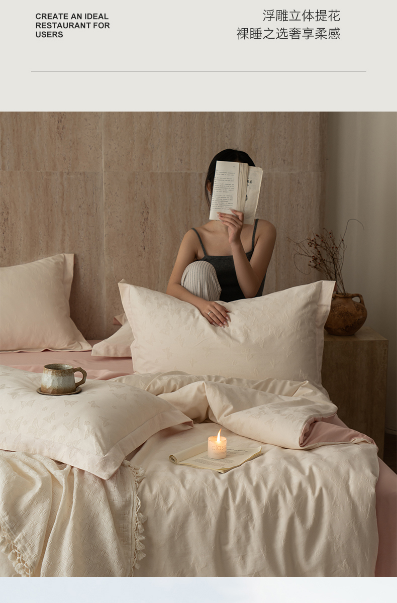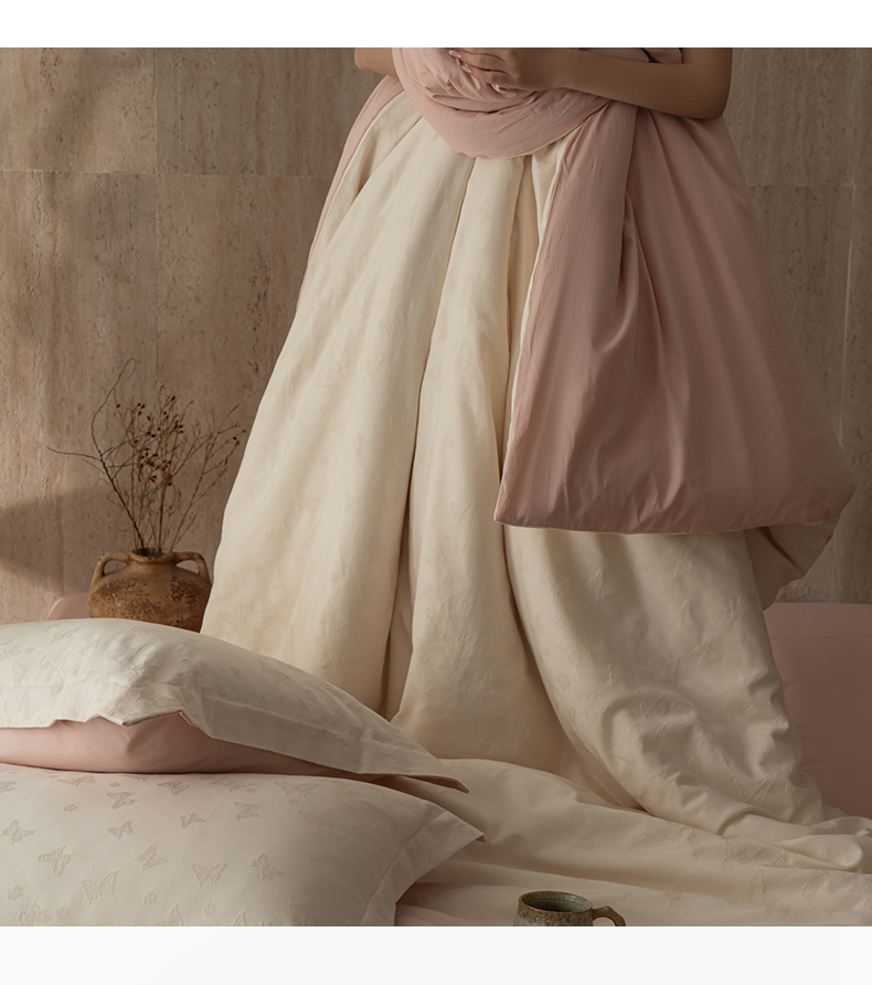 当前位置: 91家纺网 > 商品网购 > 床品套件 > 四件套 > 全棉普通四件套 > 爱思佳 2026新款A类全棉60s浮雕亮面提花系列四件套 蝶舞-粉