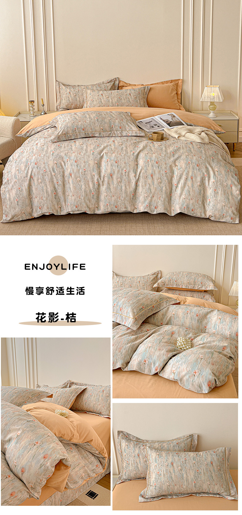 商品名称:朵希曼 2026新款全棉生态磨毛数码印花系列四件套 满堂香
