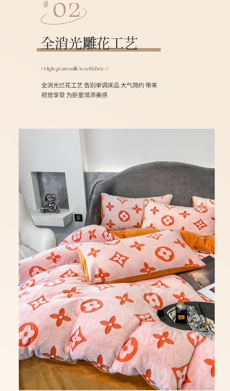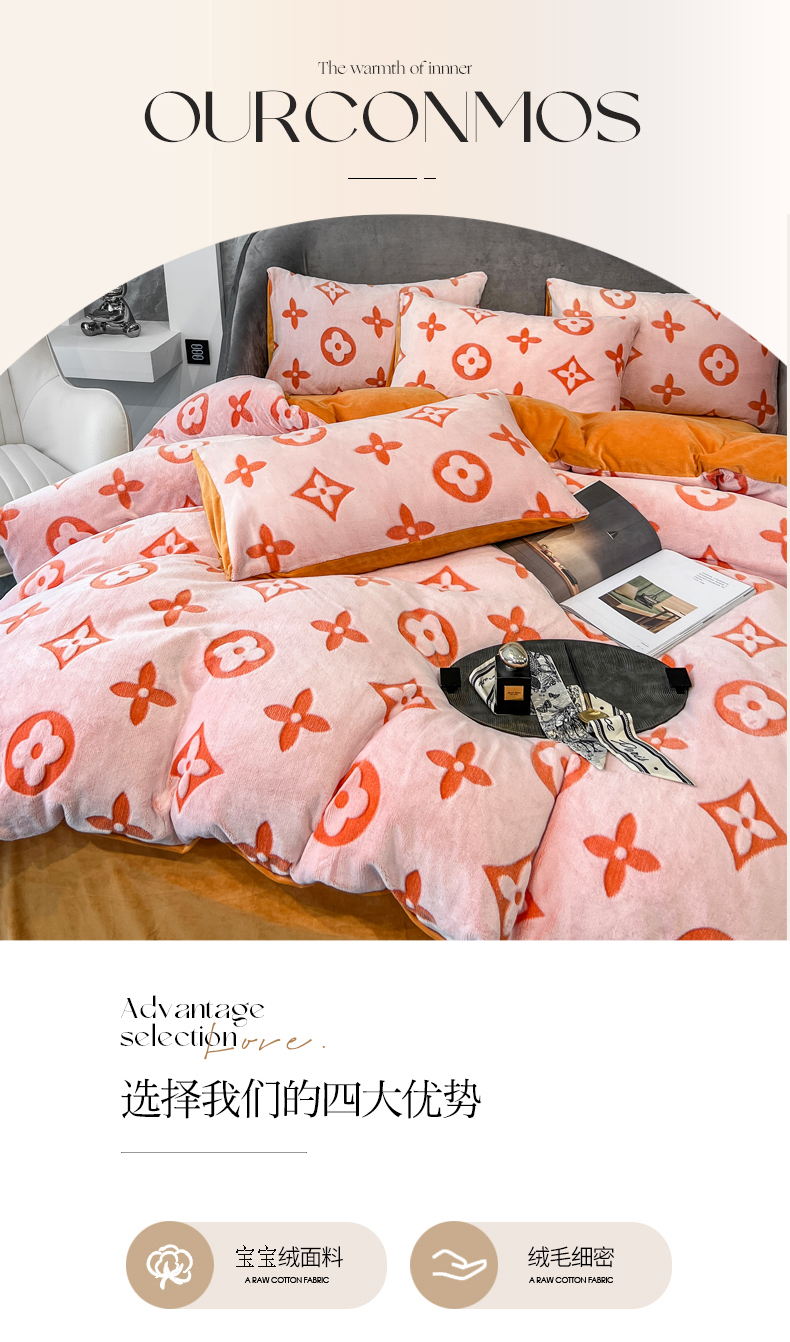 当前位置: 91家纺网 > 商品网购 > 床品套件 > 四件套 > 其它四件套 > 啊雅家居 2026新款雕花绒加宝宝绒四件套床单款床笠款 点雕橙