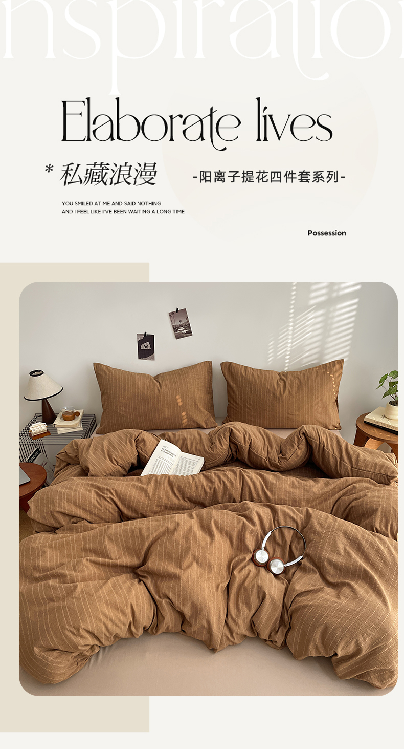 当前位置: 91家纺网 > 商品网购 > 床品套件 > 四件套 > 其它四件套 > 优承佳生活馆 2026新款高克重无印风阳离子提花工艺三件套四件套单被套系列 (提供买家秀) 阳离子-焦糖色