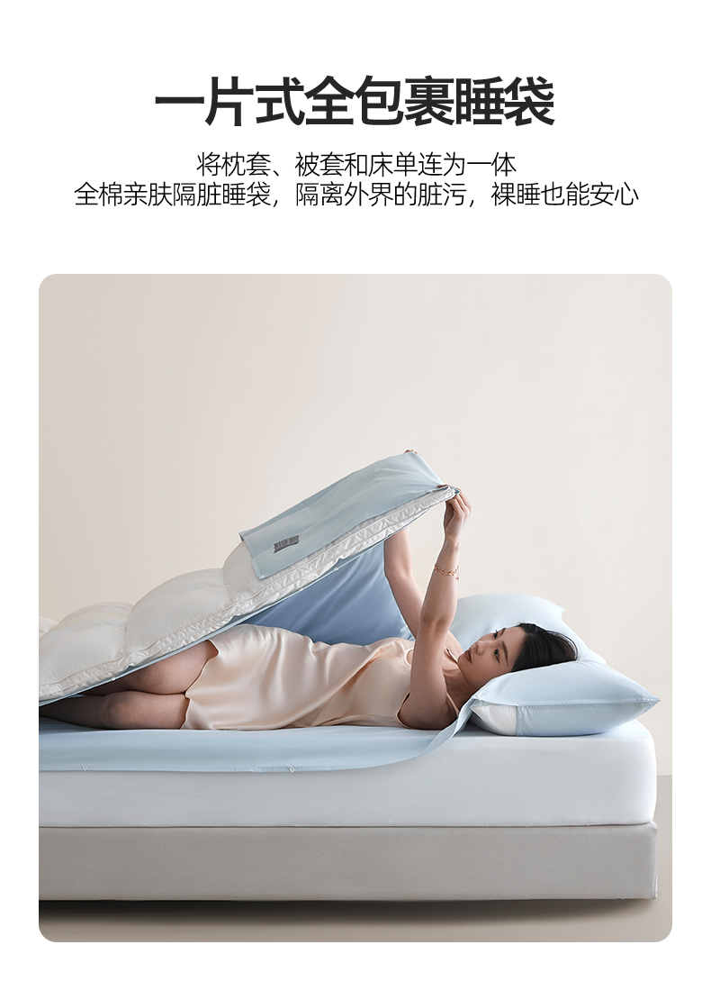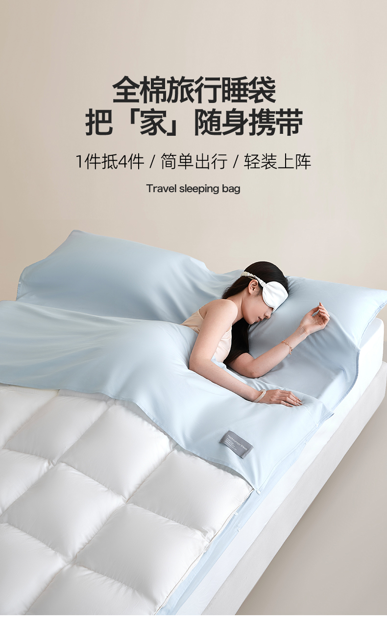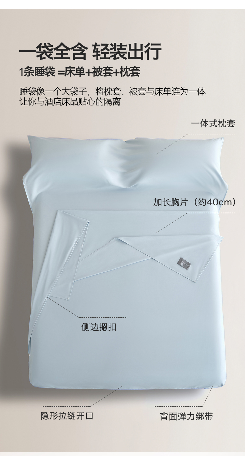 商品名称:女子家纺 2026新款全棉纯棉旅行随身携带睡袋 隔脏旅睡-晴空蓝