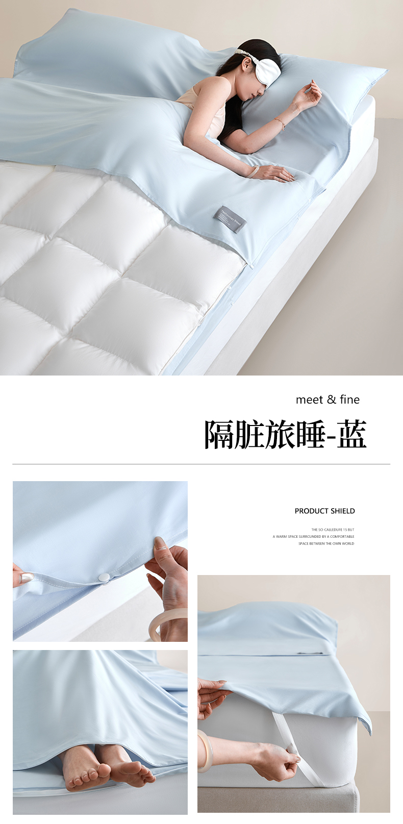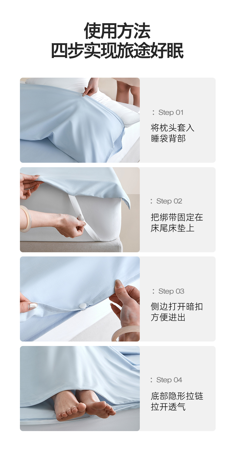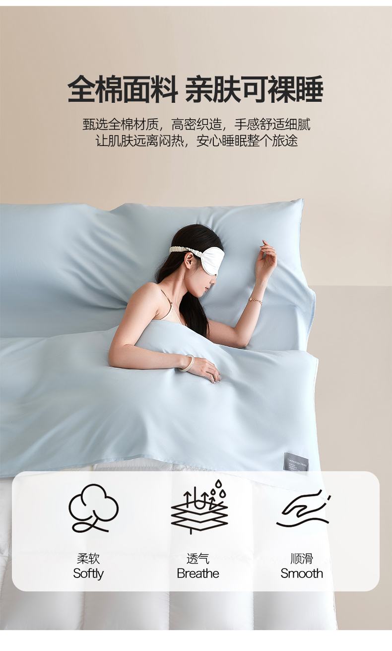 商品名称:女子家纺 2026新款全棉纯棉旅行随身携带睡袋 隔脏旅睡-晴空蓝