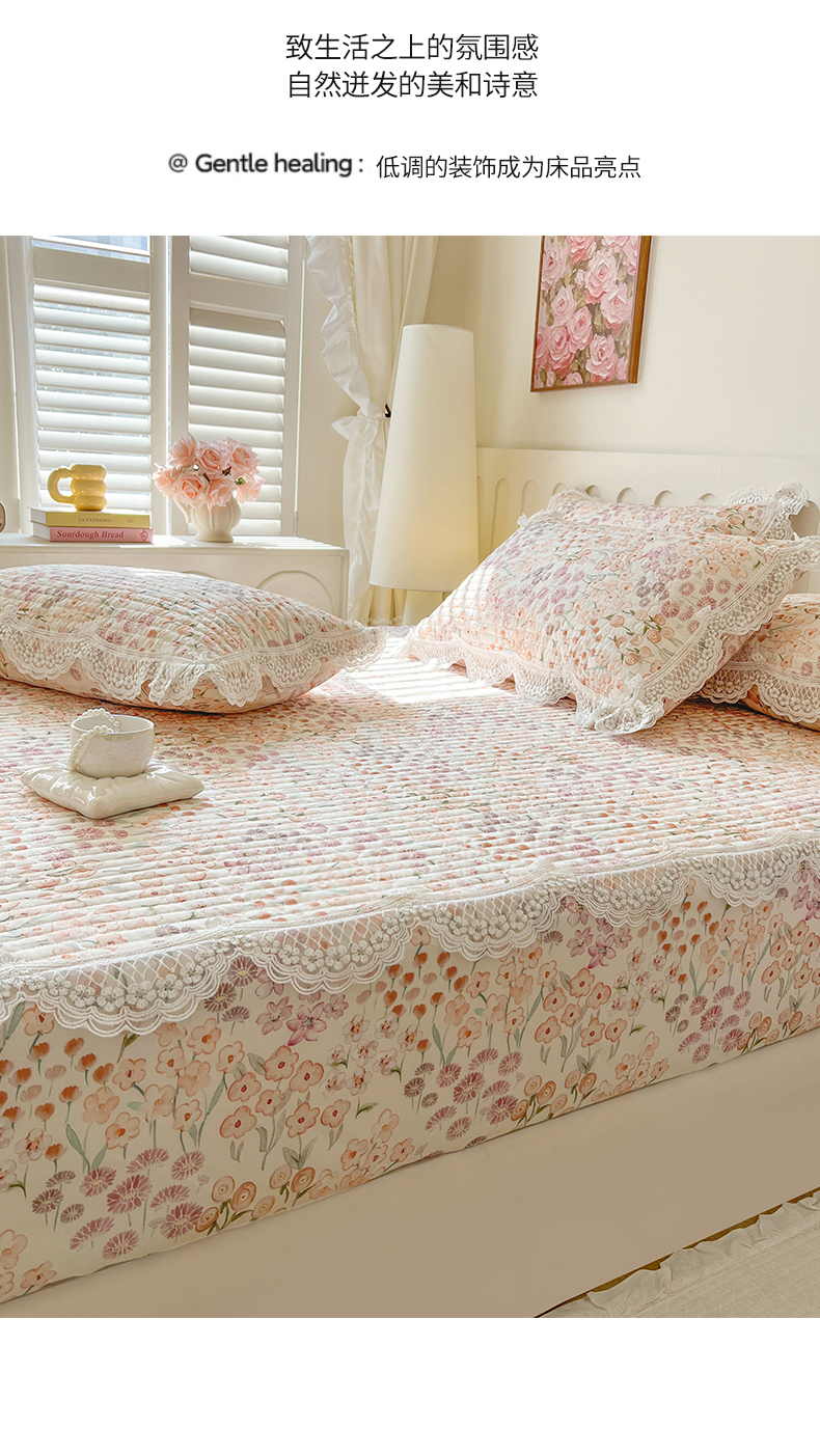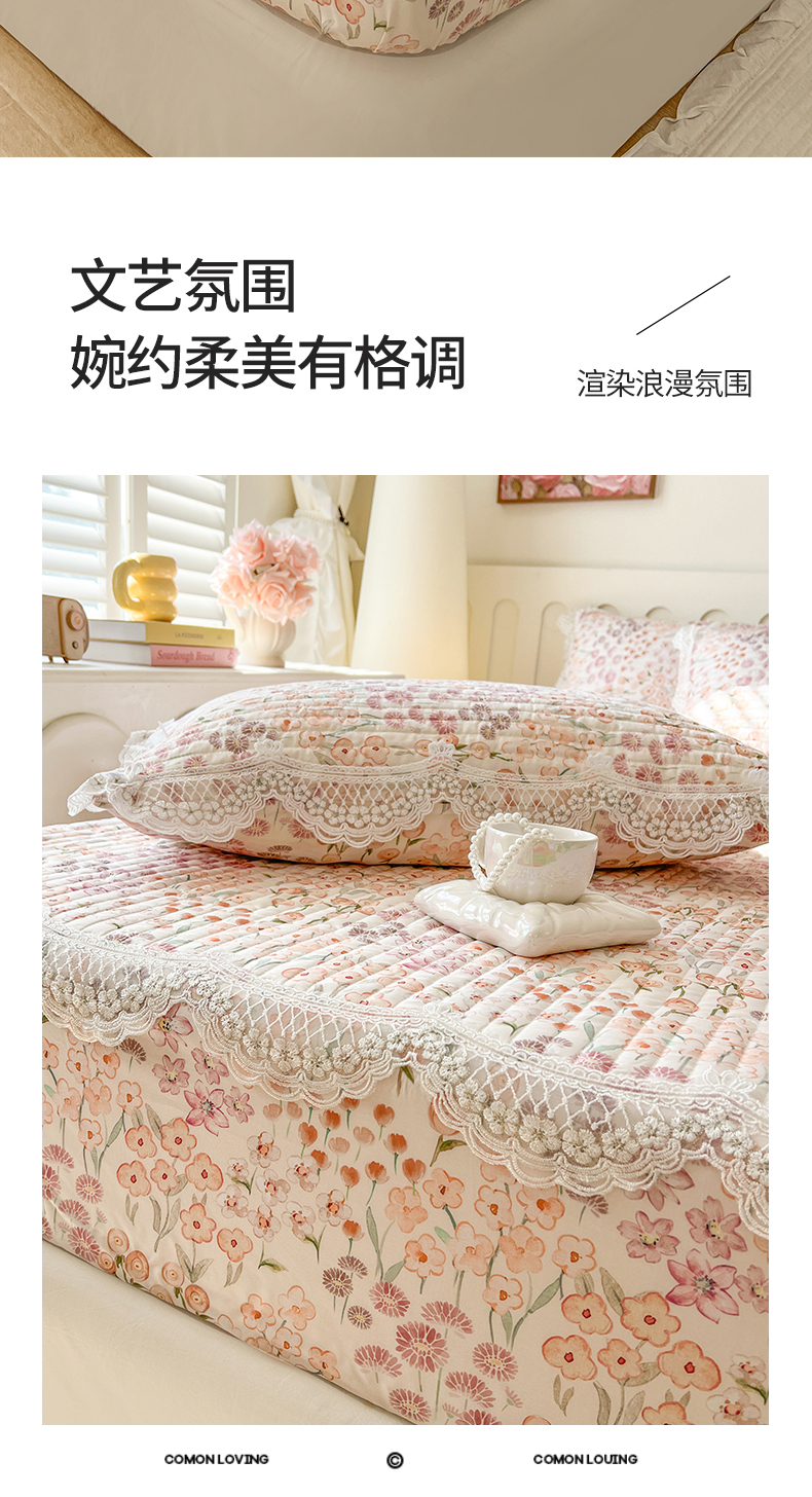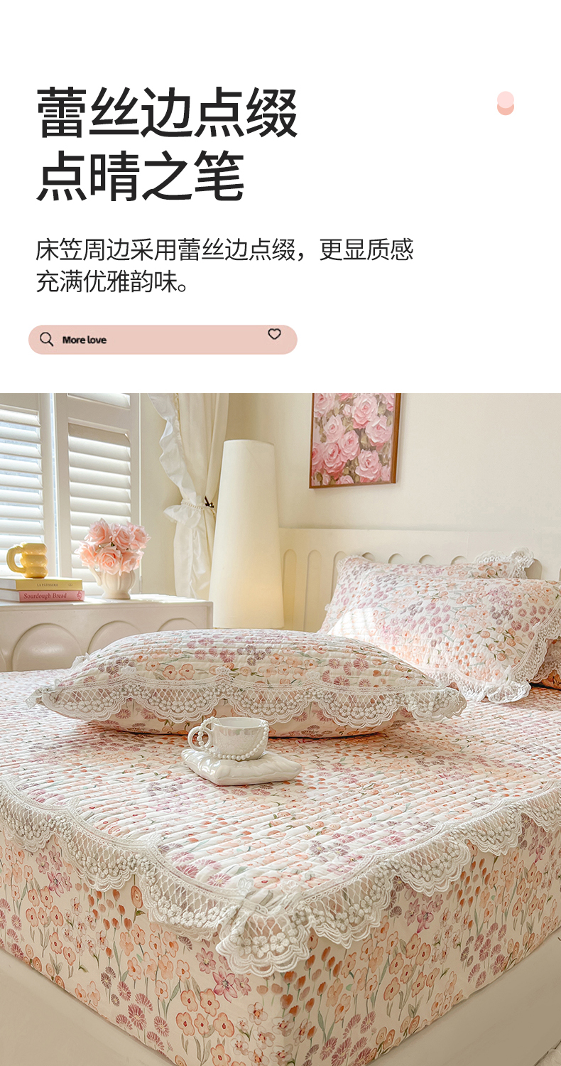 (总)网红馆(ck家纺) 2026新款全棉蕾丝花边床裙款床笠晨暮花间系列,绯红,粉色,麦绿,米色,浅紫,雾蓝
