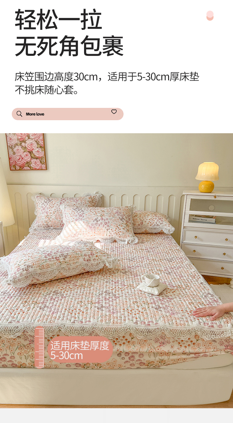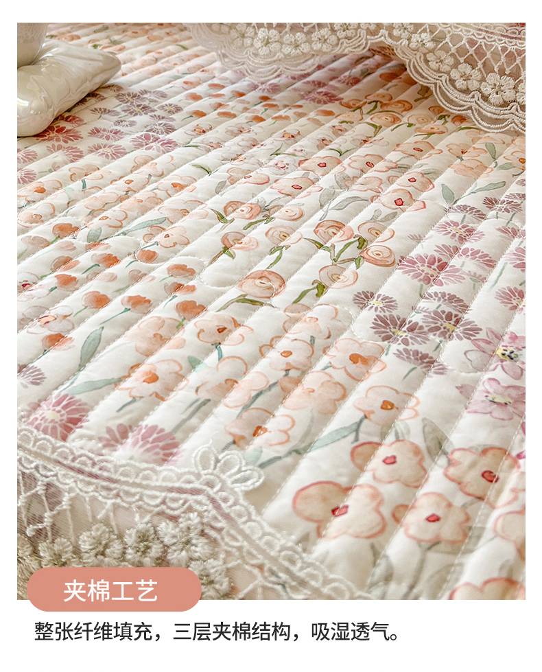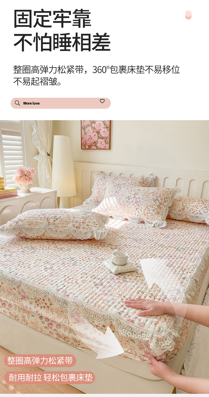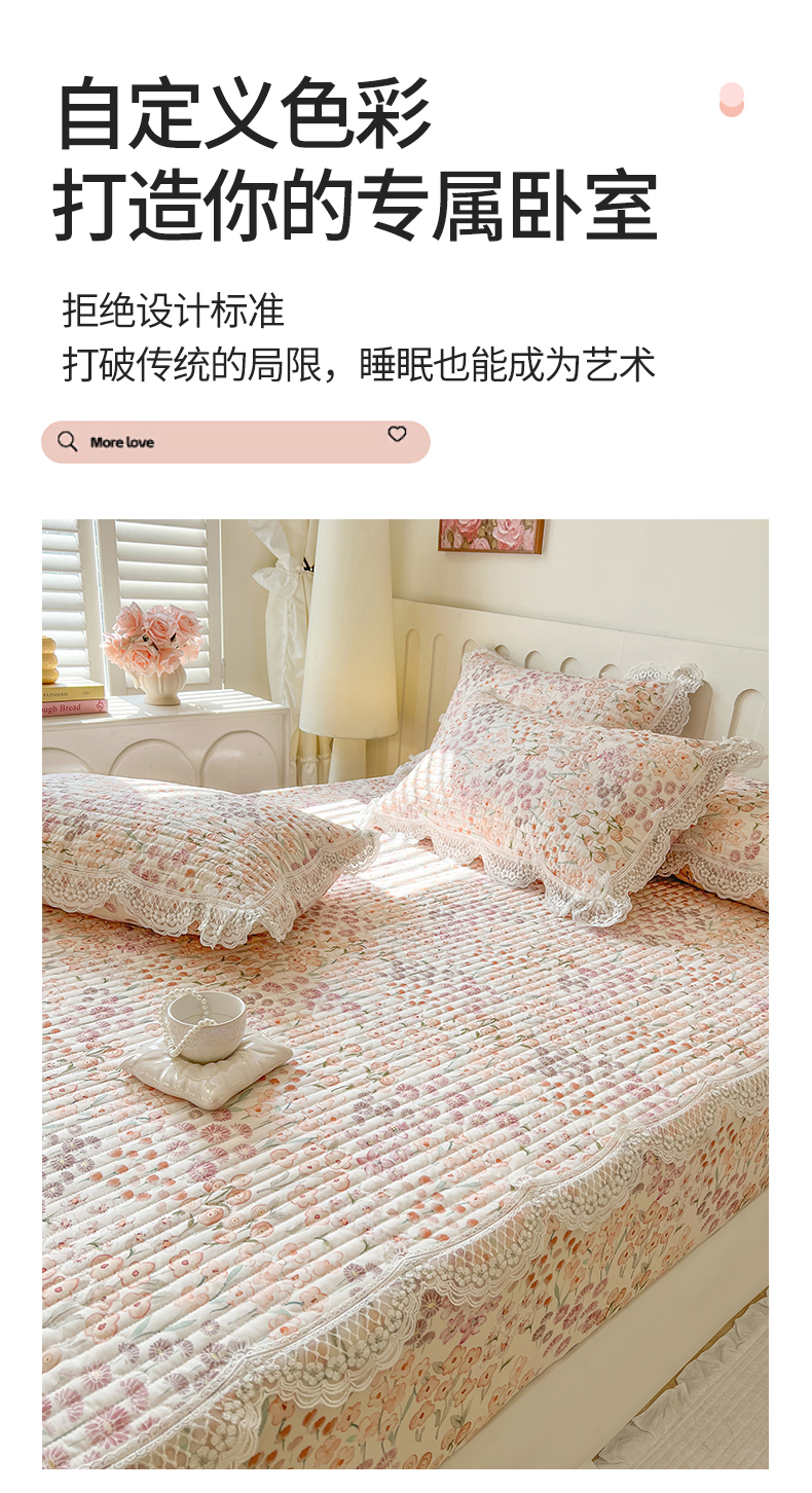(总)网红馆(ck家纺) 2026新款全棉蕾丝花边床裙款床笠晨暮花间系列,绯红,粉色,麦绿,米色,浅紫,雾蓝