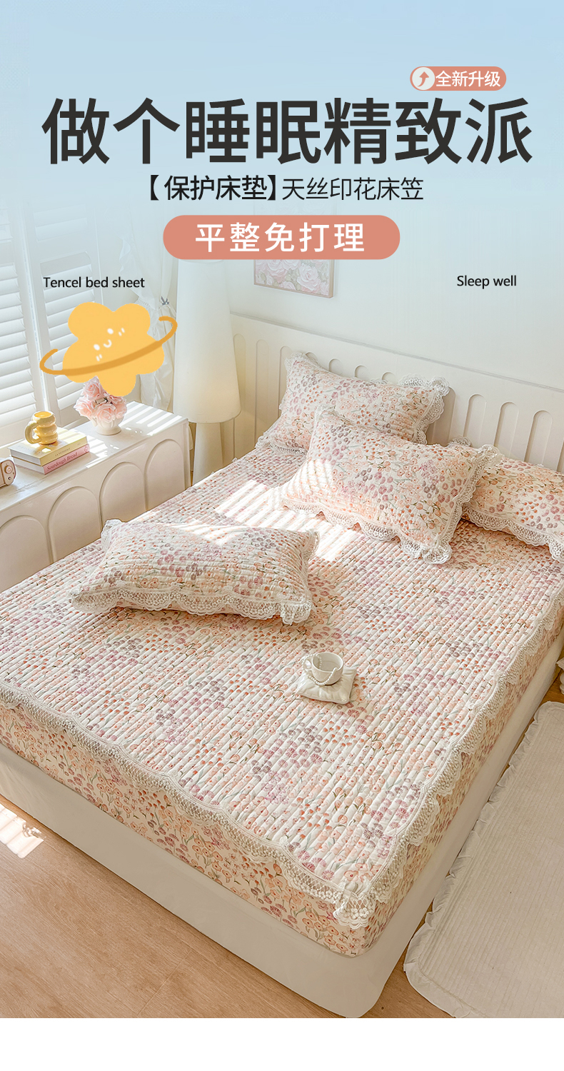 网红馆(ck家纺) 2026新款莱赛尔天丝印花床笠 甜蜜蜜