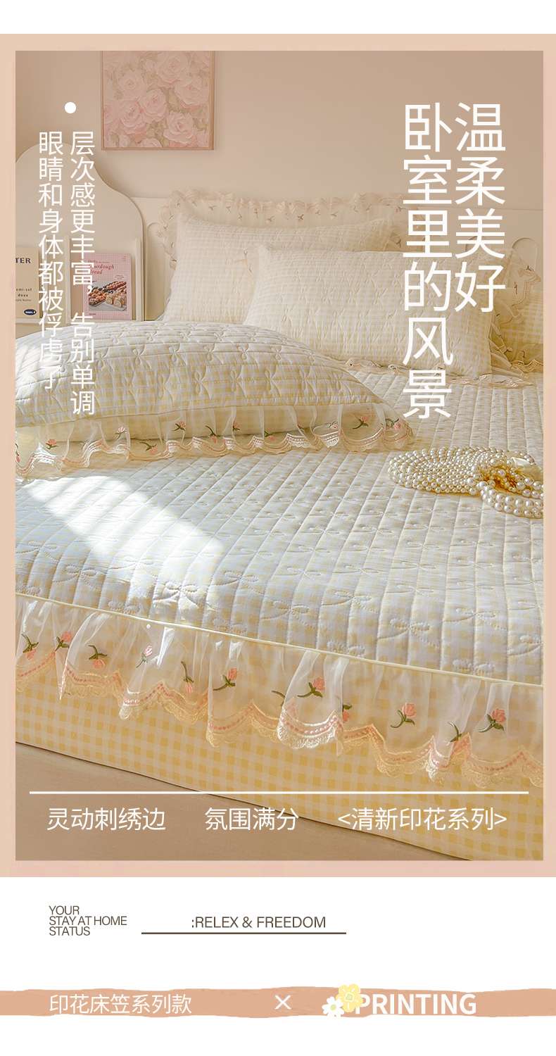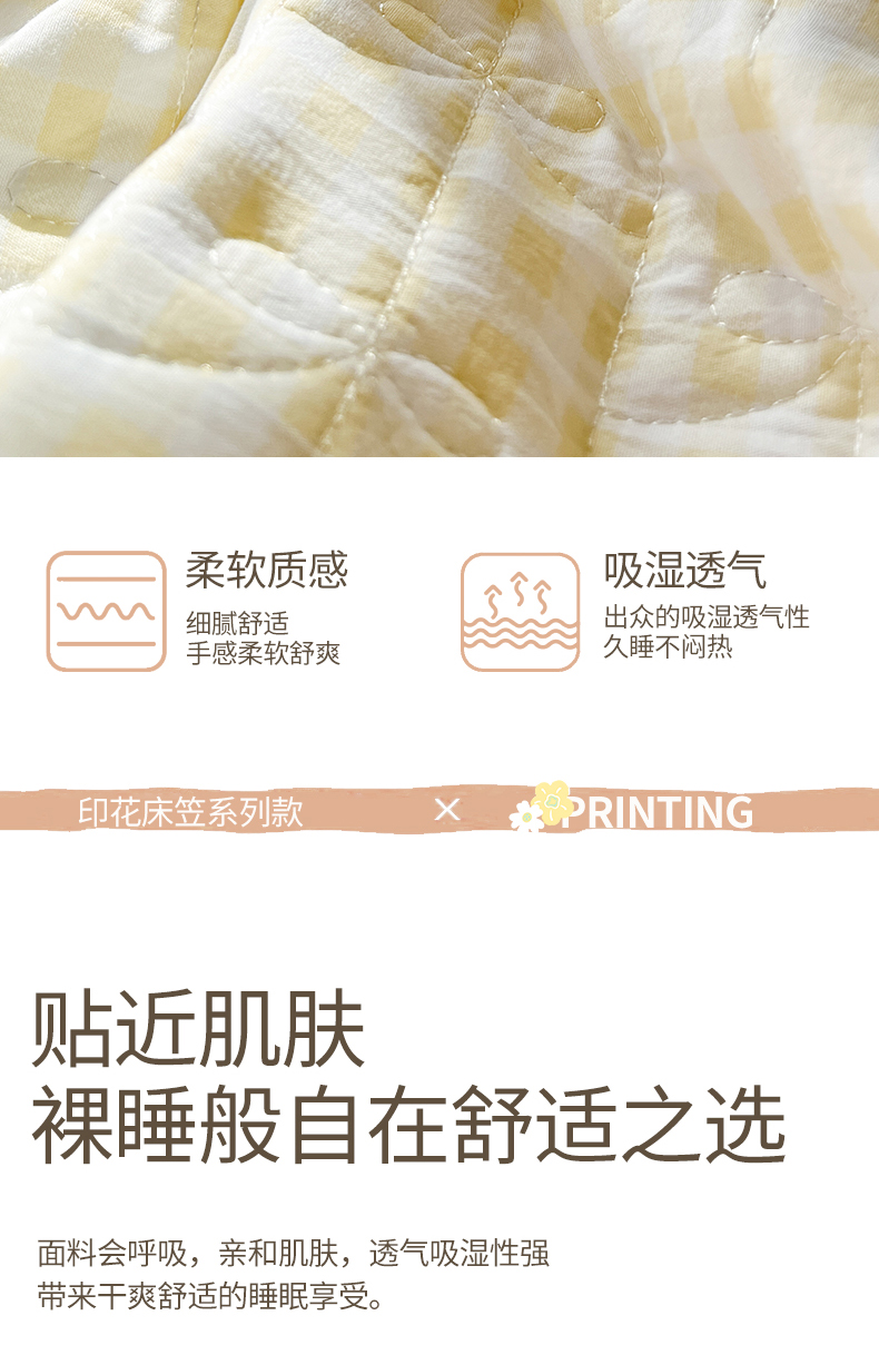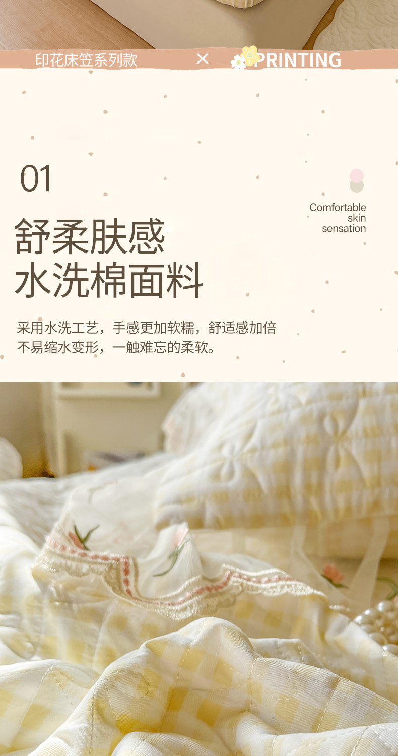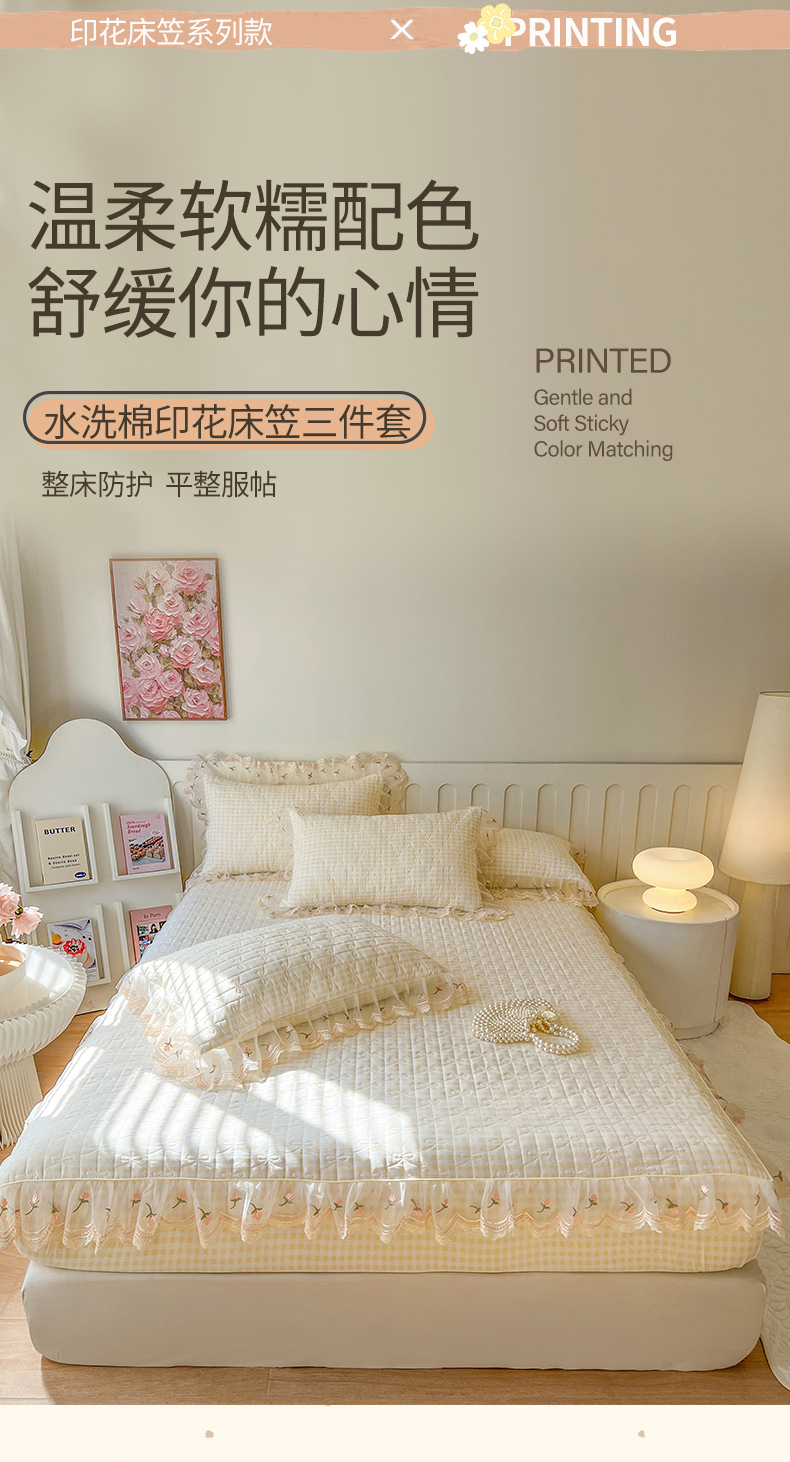 • 91家纺网 家纺一手货源 找家纺 网红馆(ck家纺) 2026新款水洗棉印花床笠三件套 奶油格格