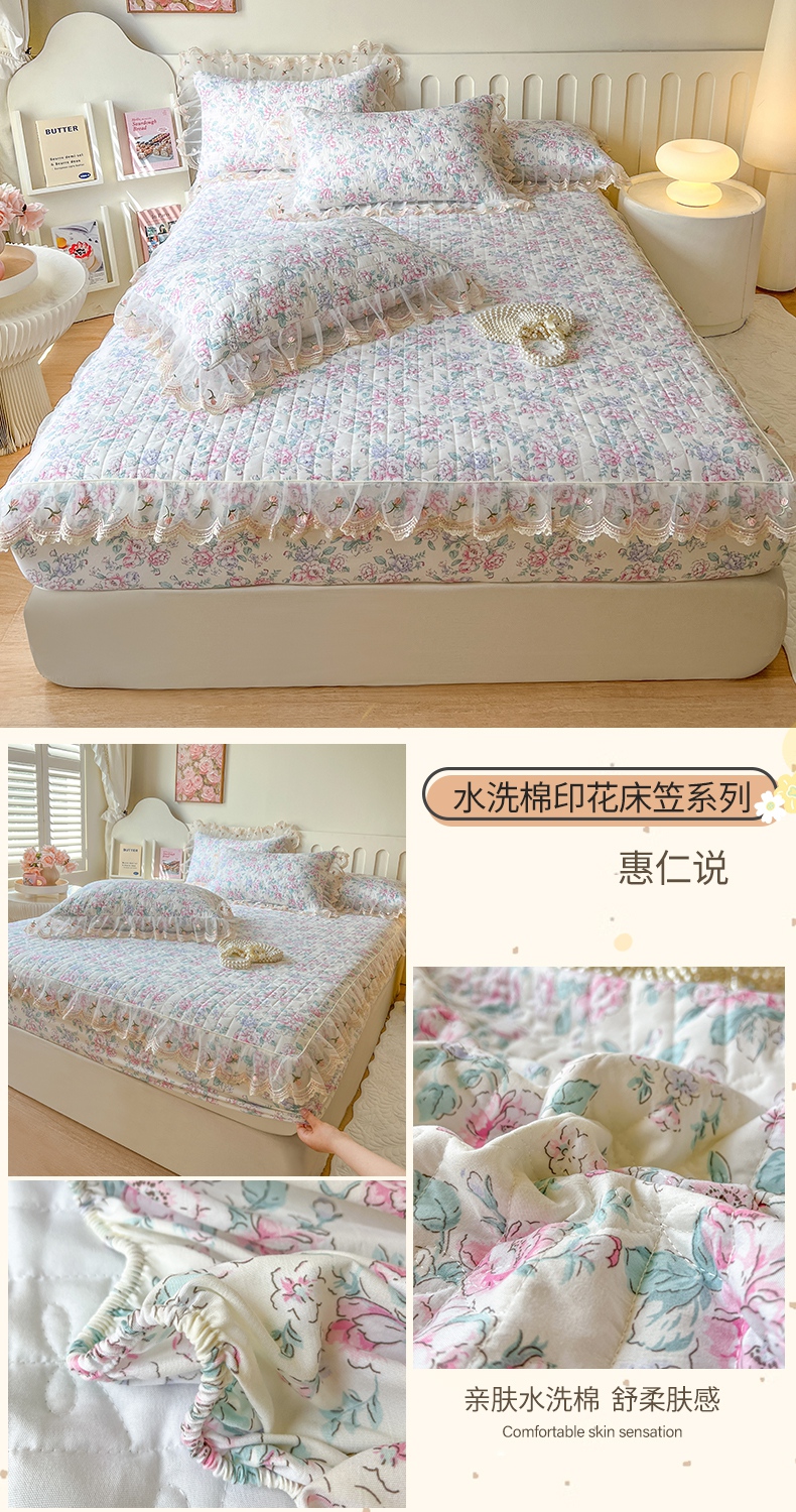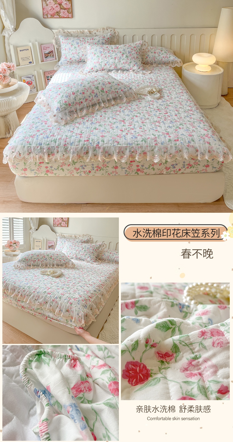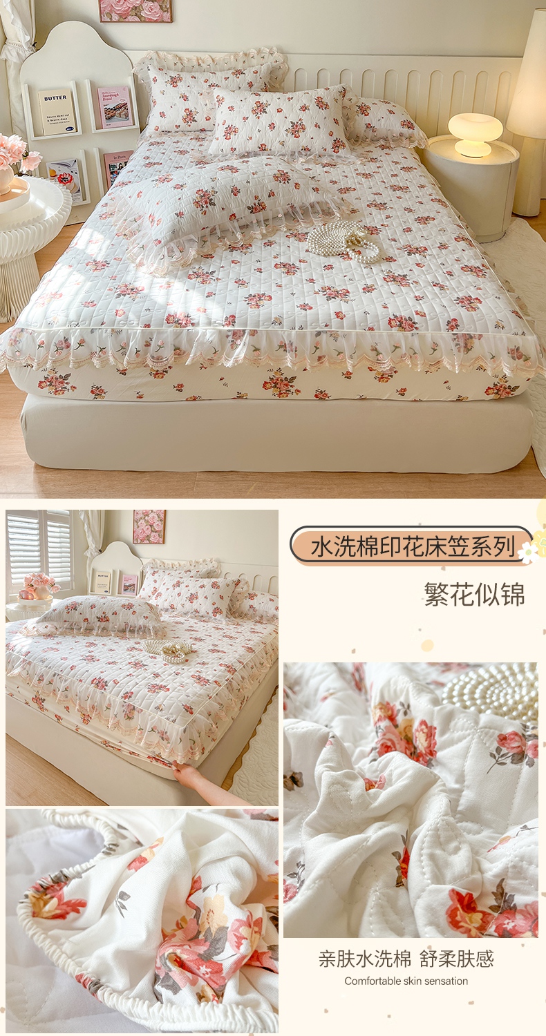 • 91家纺网 家纺一手货源 找家纺 网红馆(ck家纺) 2026新款水洗棉印花床笠三件套 奶油格格