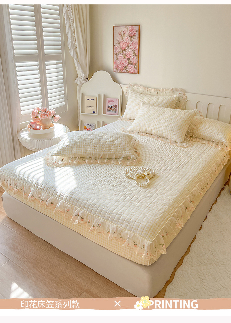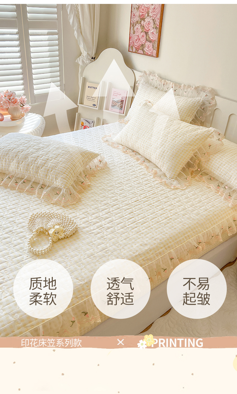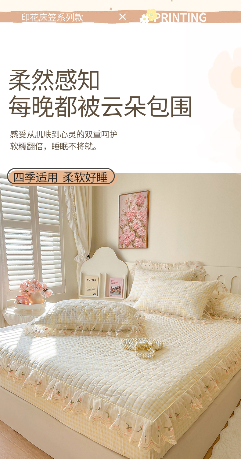 当前位置: 91家纺网 > 商品网购 > 床上用品 > 床笠 > 网红馆(ck家纺) 2026新款水洗棉印花床笠三件套 奶油格格