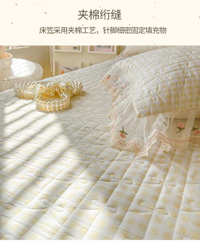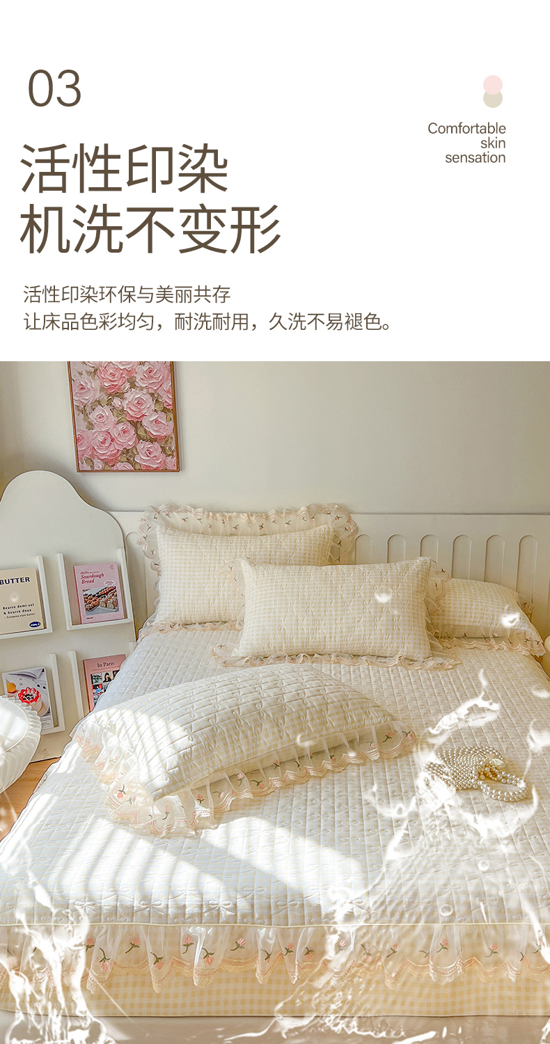 网红馆(ck家纺) 2026新款水洗棉印花床笠三件套 奶油格格