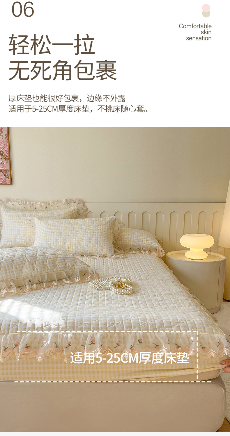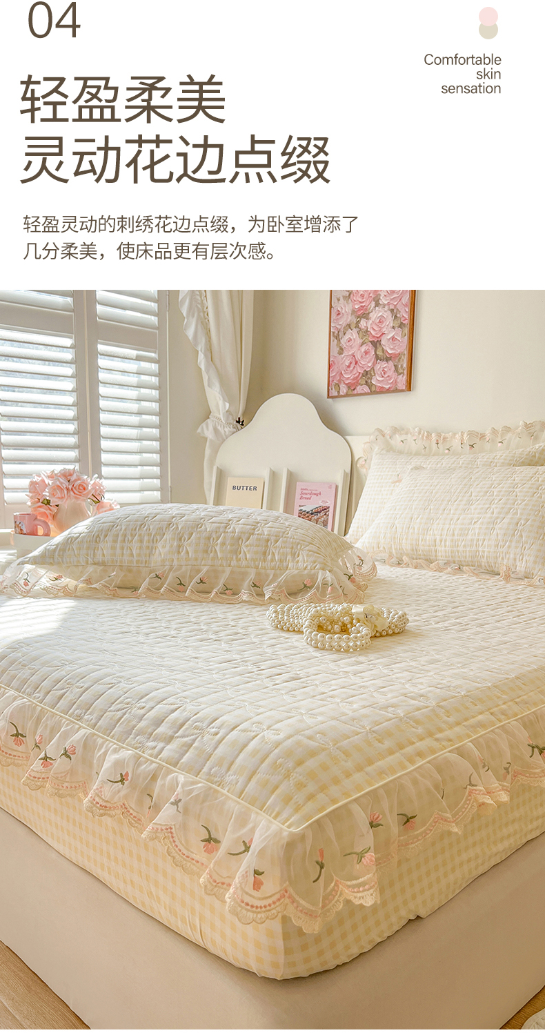 (总)网红馆(ck家纺) 2026新款全棉蕾丝花边床裙款床笠晨暮花间系列,绯红,粉色,麦绿,米色,浅紫,雾蓝