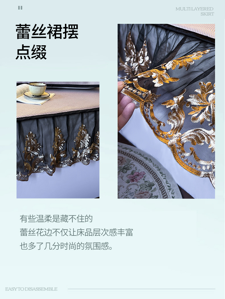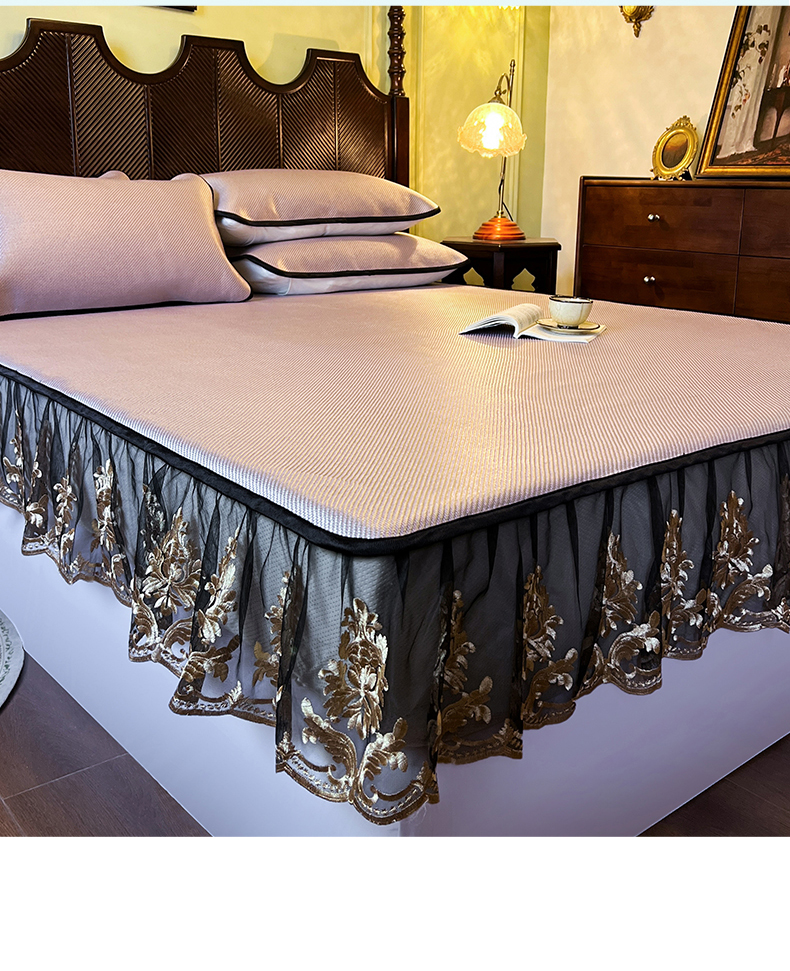 (总)网红馆(ck家纺) 2026新款色织蕾丝边床裙款床笠,宝石蓝,黛绿色,浪漫紫,奶茶色,石青,香妃粉,烟熏灰