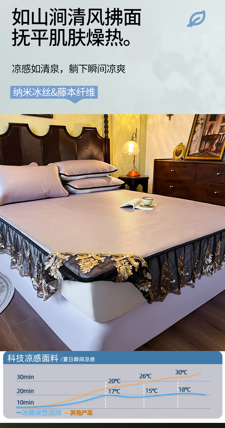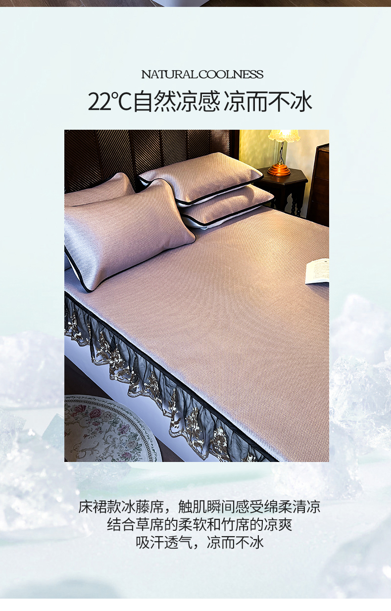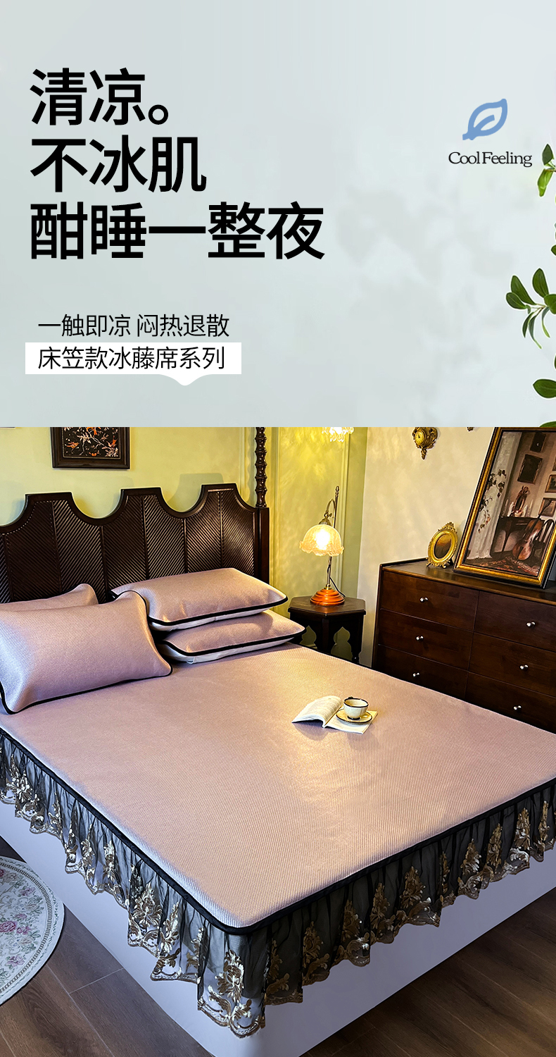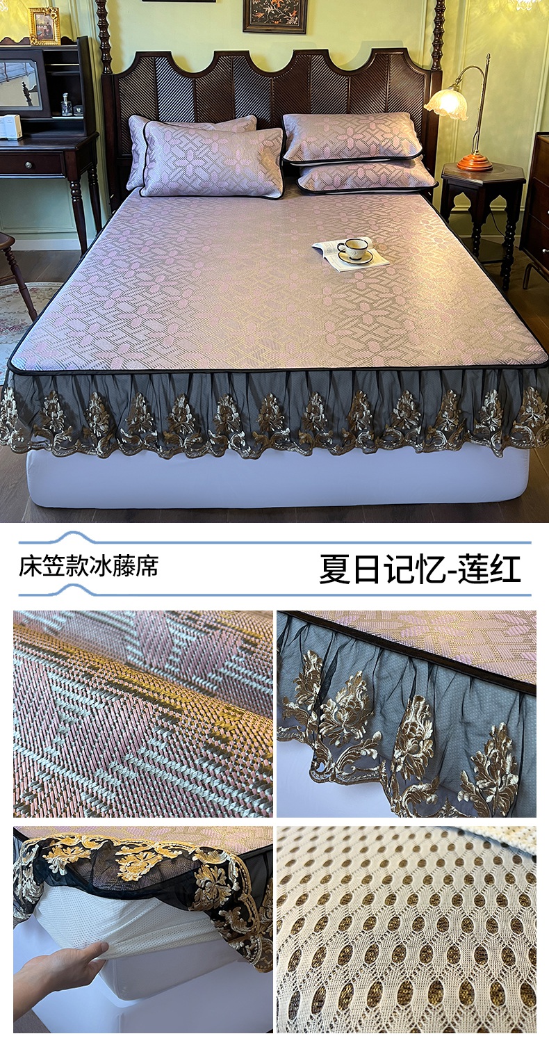 商品名称:网红馆(ck家纺) 2026新款床笠款冰藤席夏日记忆系列 莲红