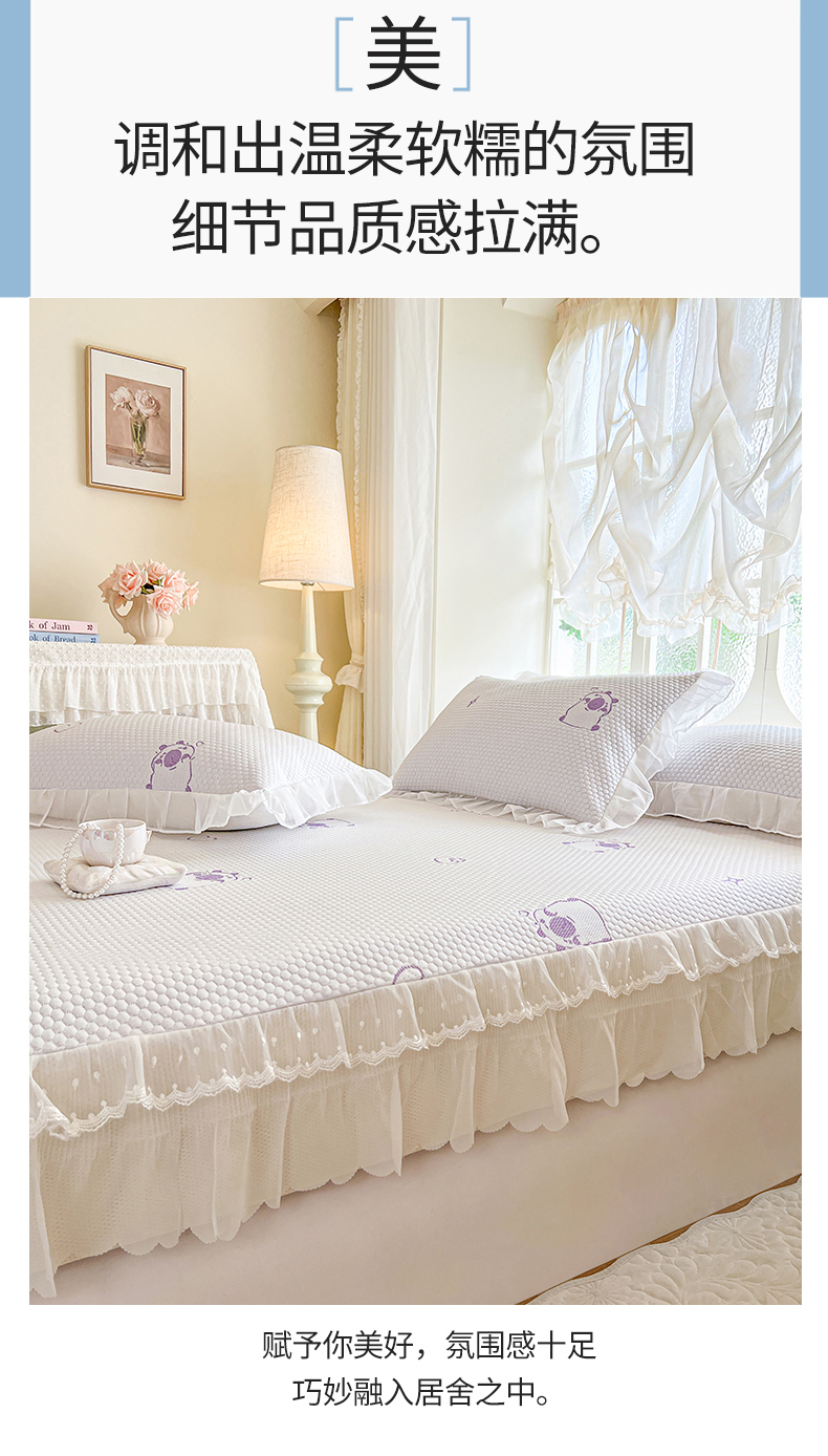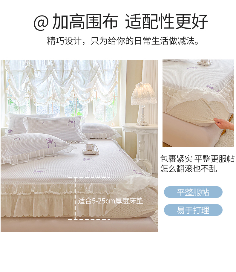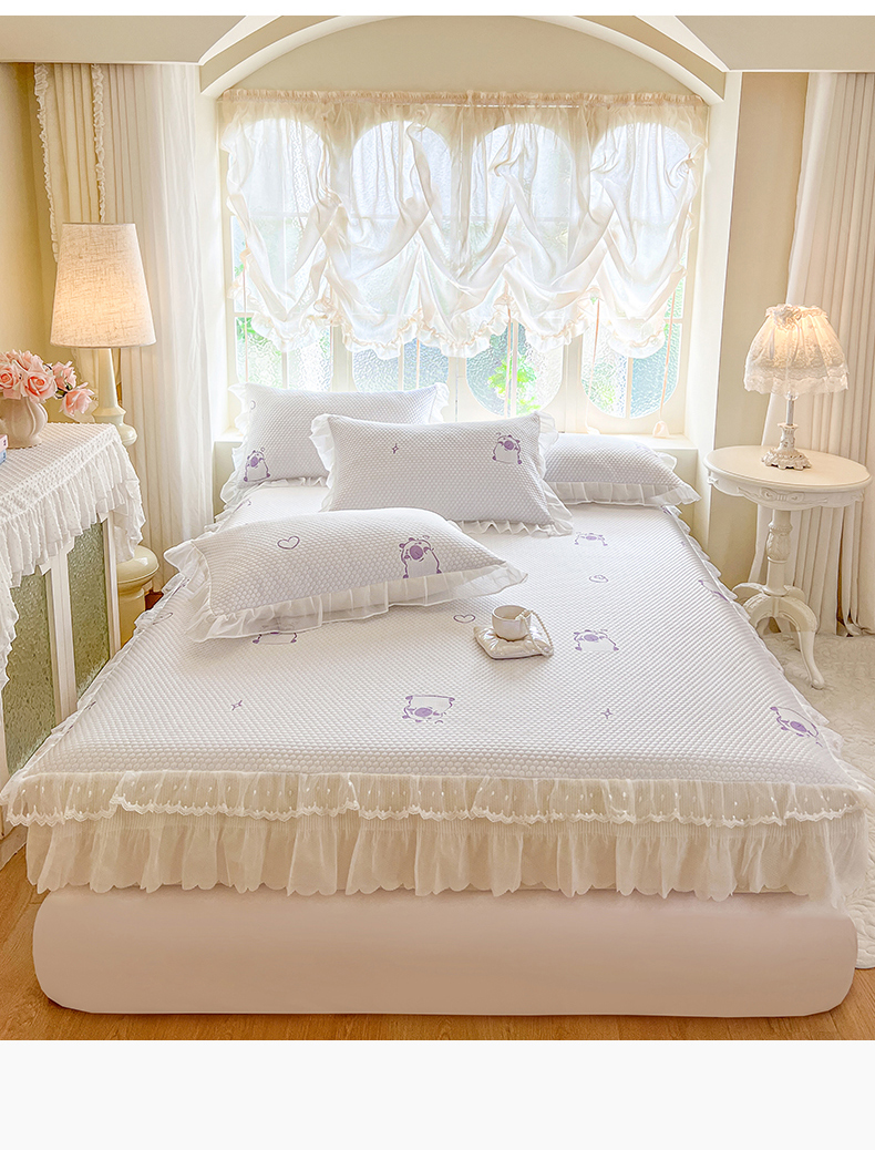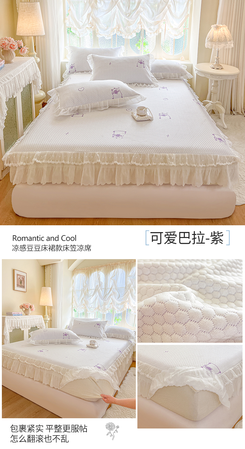 网红馆(ck家纺) 2026新款小清新床笠式床裙豆豆凉席三件套 可爱巴拉-紫
