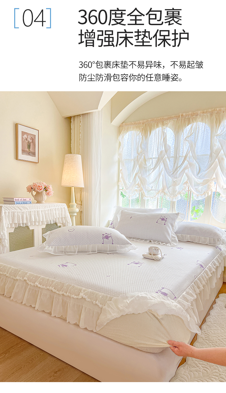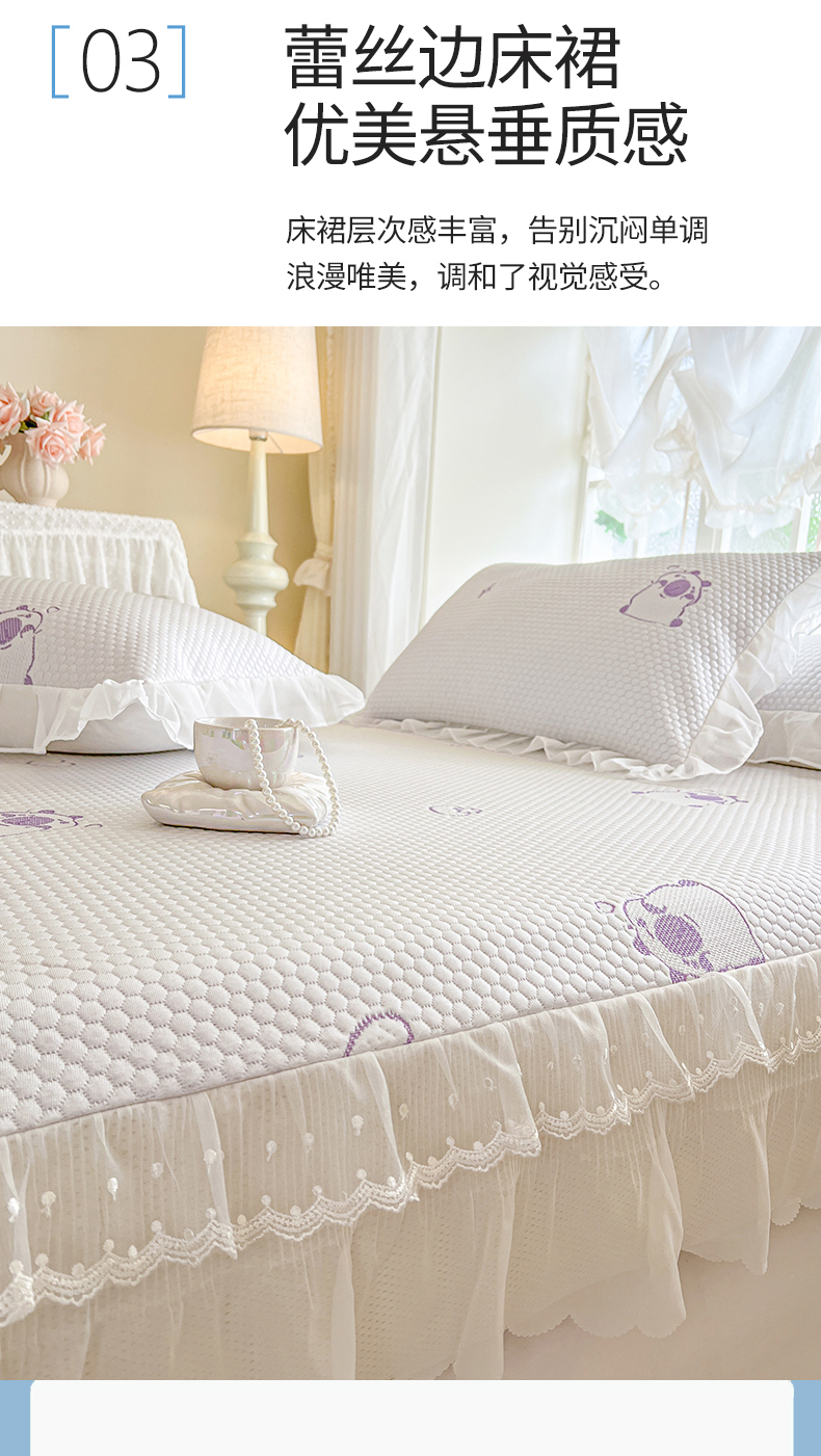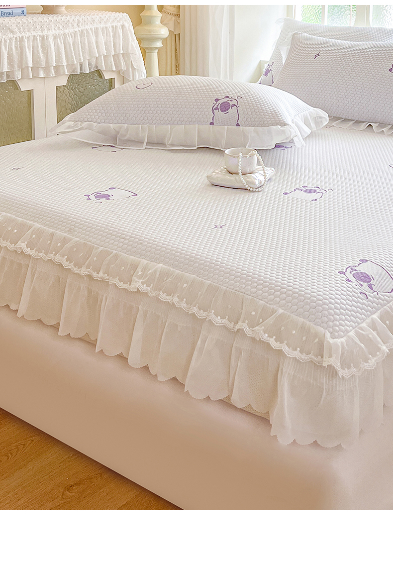 网红馆(ck家纺) 2026新款小清新床笠式床裙豆豆凉席三件套 可爱巴拉-紫