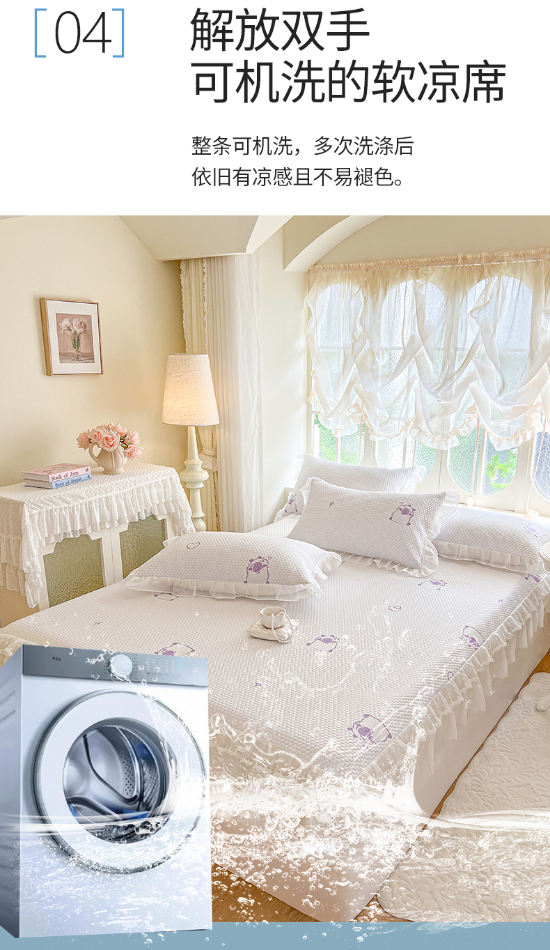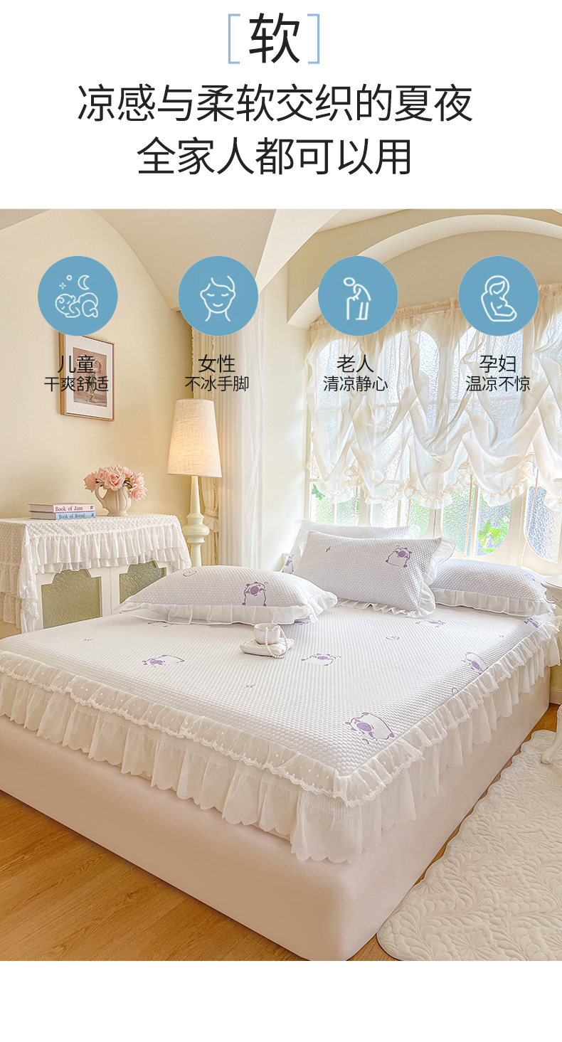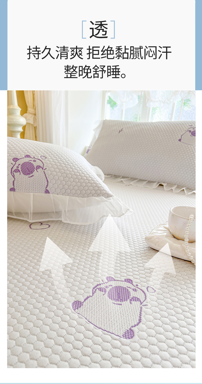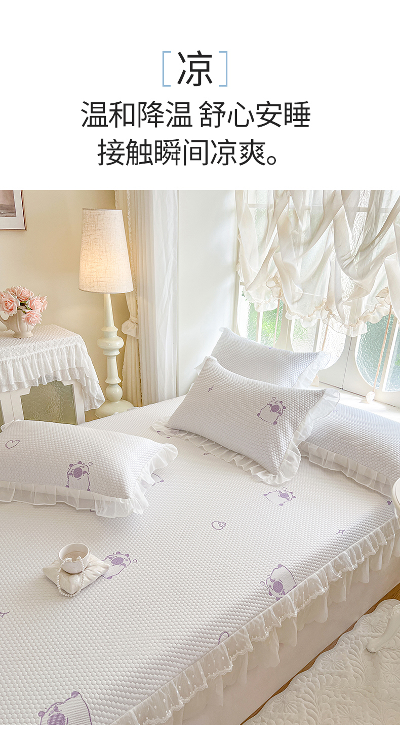 商品名称:网红馆(ck家纺) 2026新款小清新床笠式床裙豆豆凉席三件套 可爱巴拉-紫